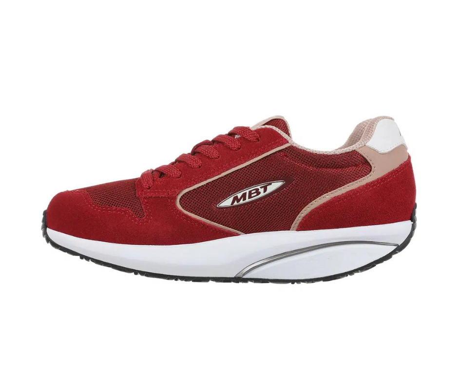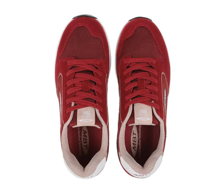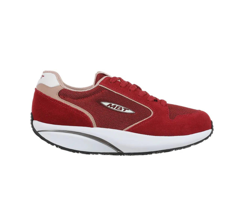 MBT 1997 Red Dahlia – en elegant röd damsko designad för att förena komfort och stil.