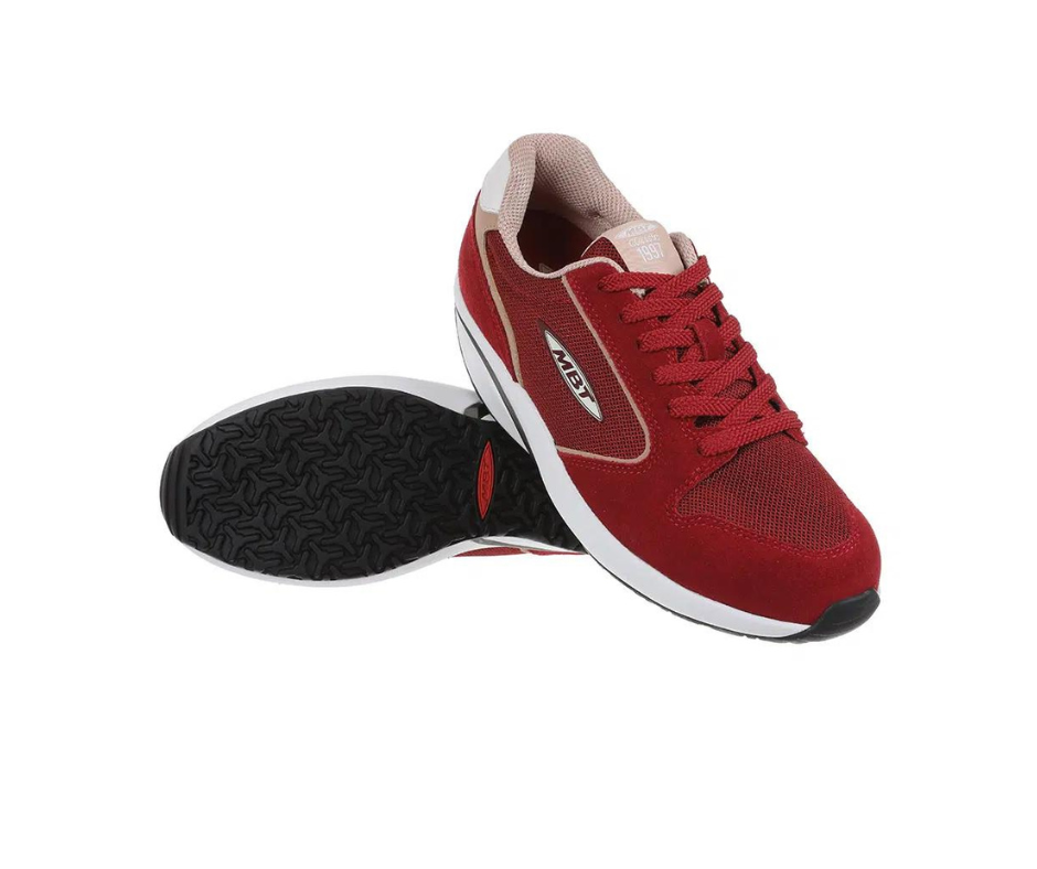 - Elegant Design med Röda Nyanser: MBT 1997 Red Dahlia presenterar en vacker röd damsko med en överdel i nubuck och matchande mesh, som ger en stilfull och sofistikerad utstrålning. Denna sko är lämplig för både byxor och klänningar och ger en färgklick till vilken garderob som helst.