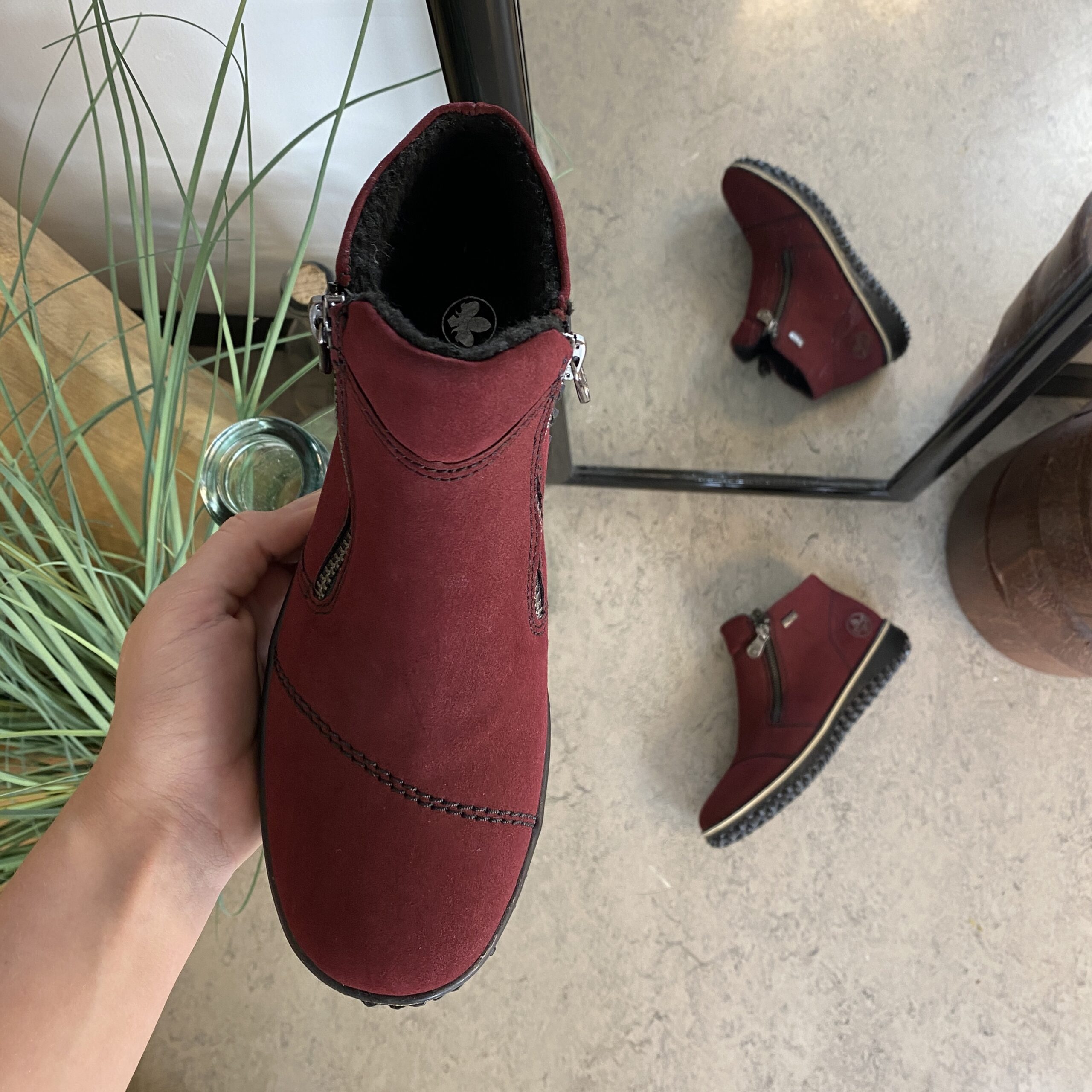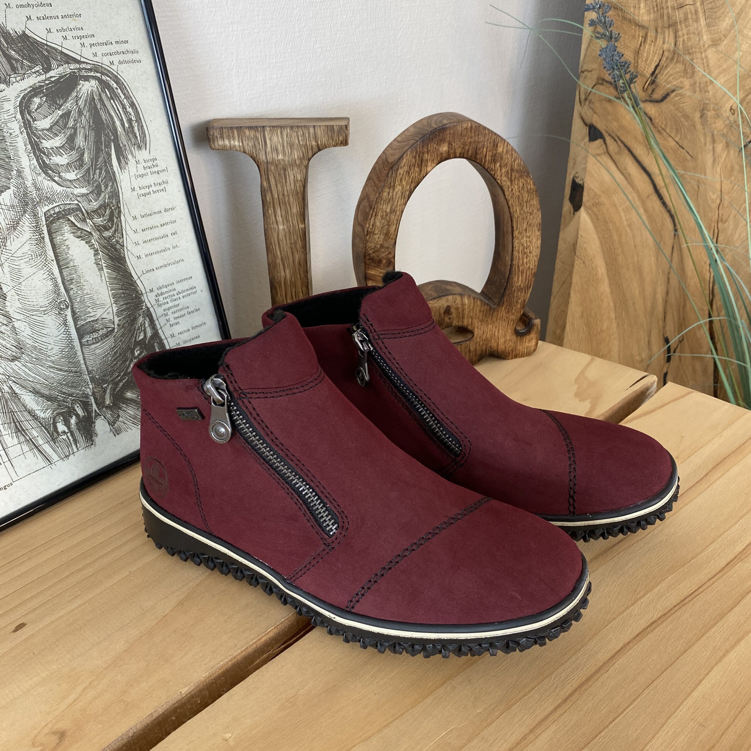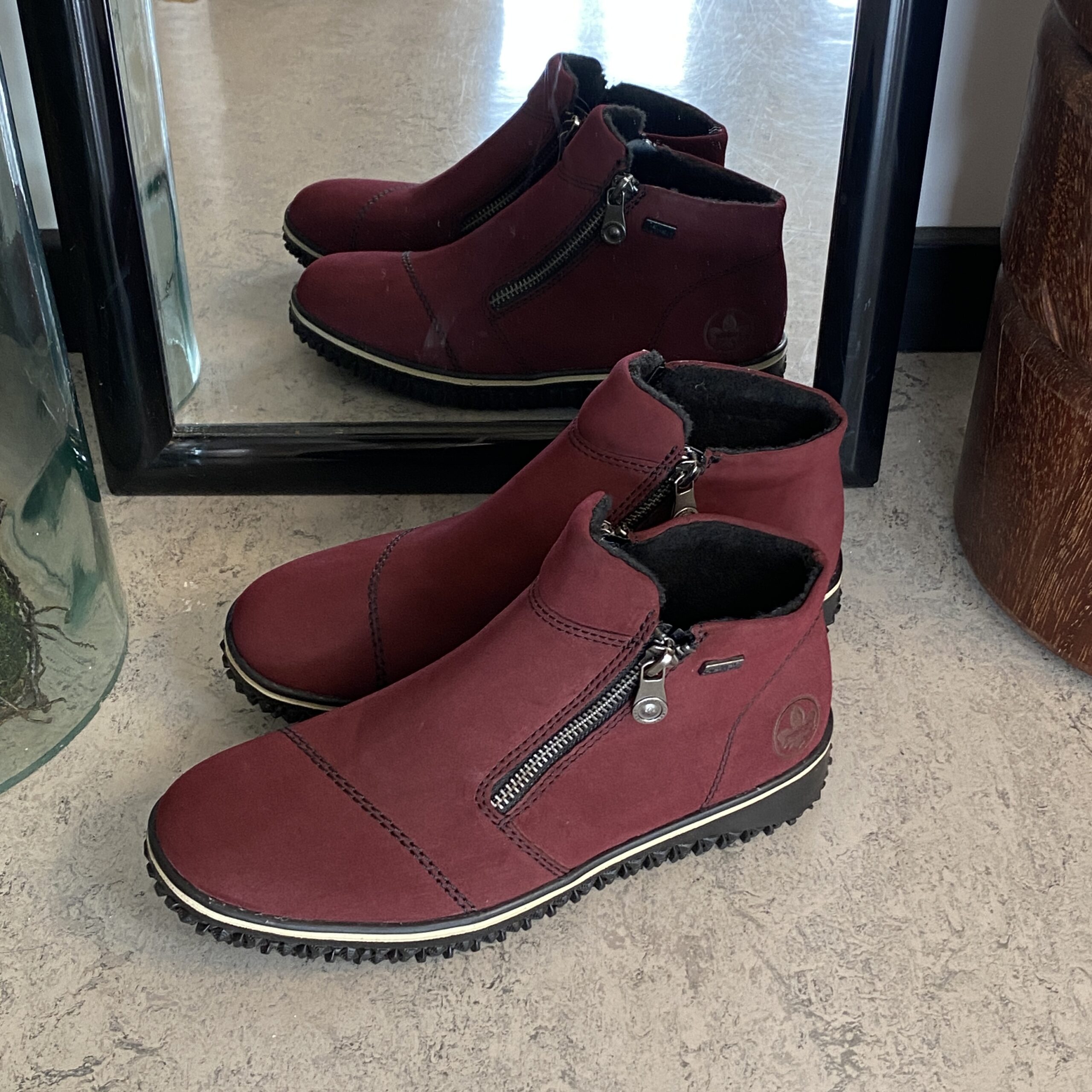 Bordeaux kort stövel från Rieker med lätt foder