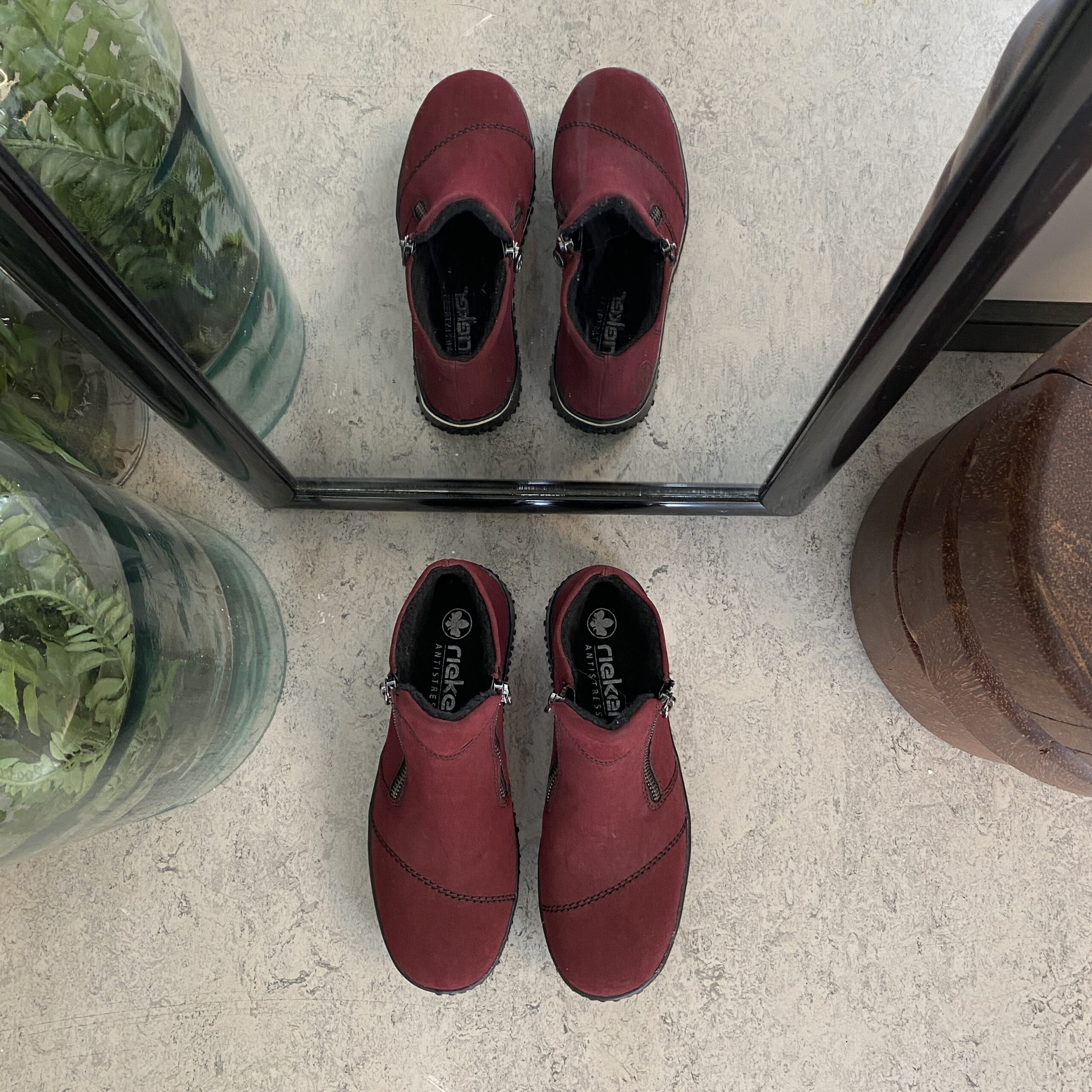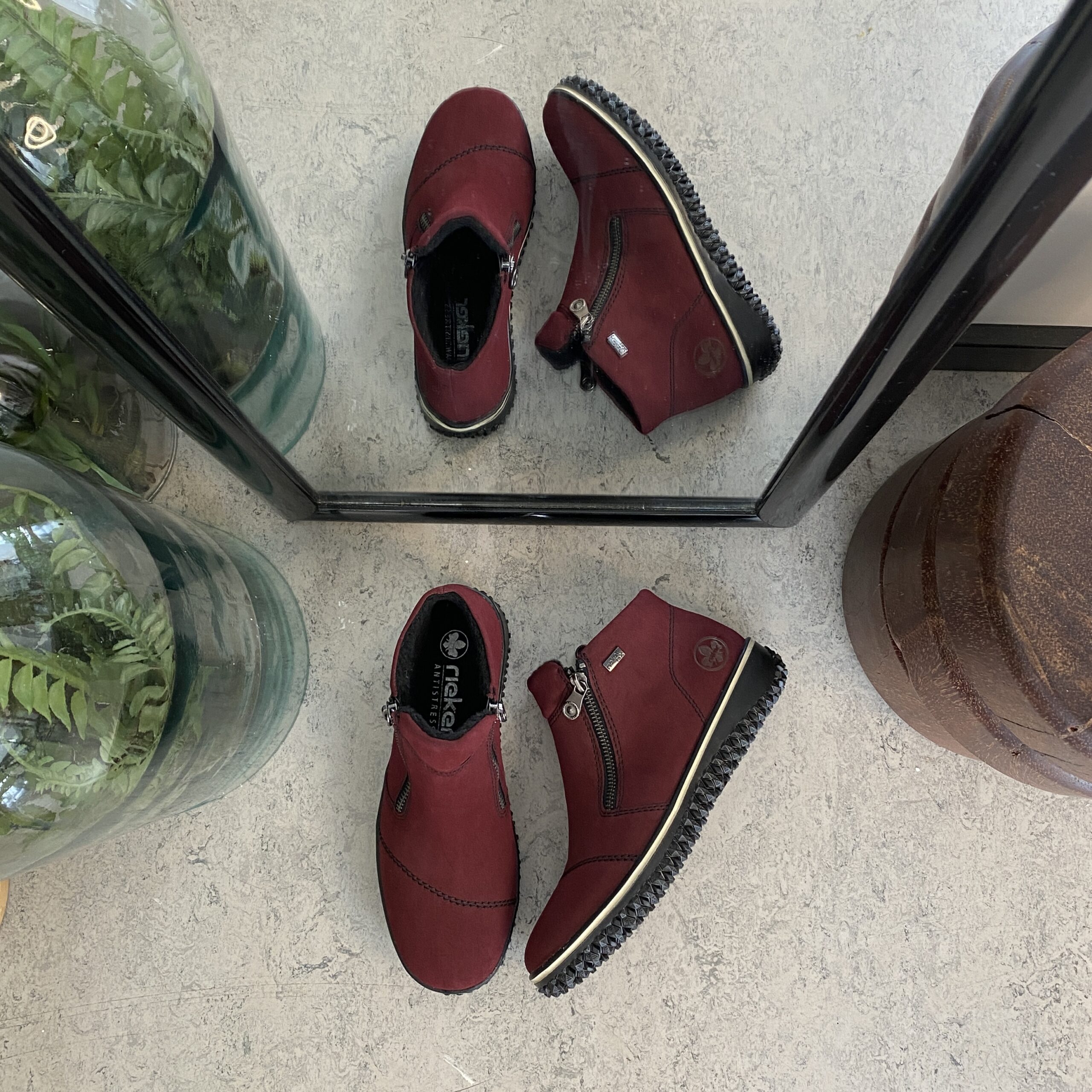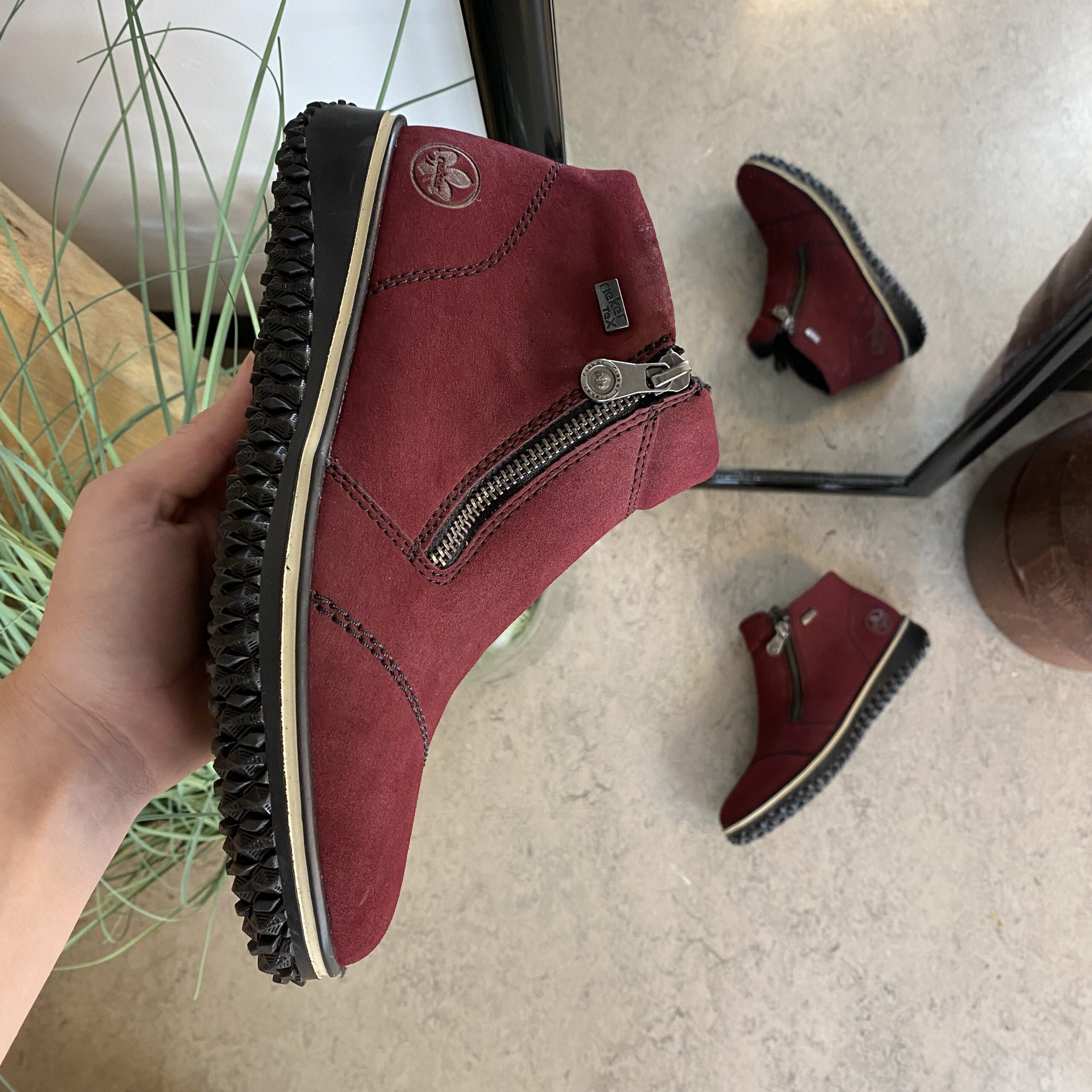Bordeaux kort stövel från Rieker med lätt foder