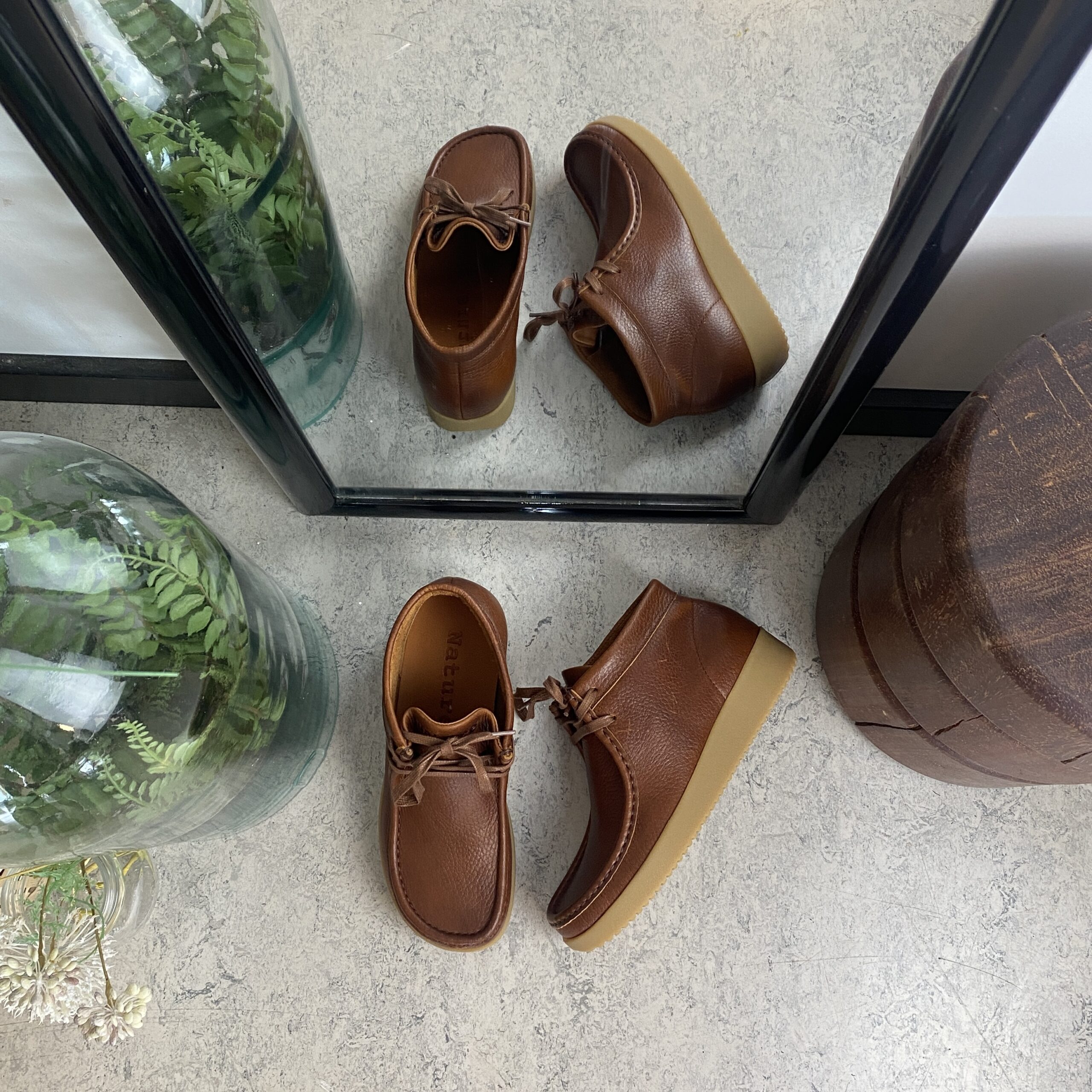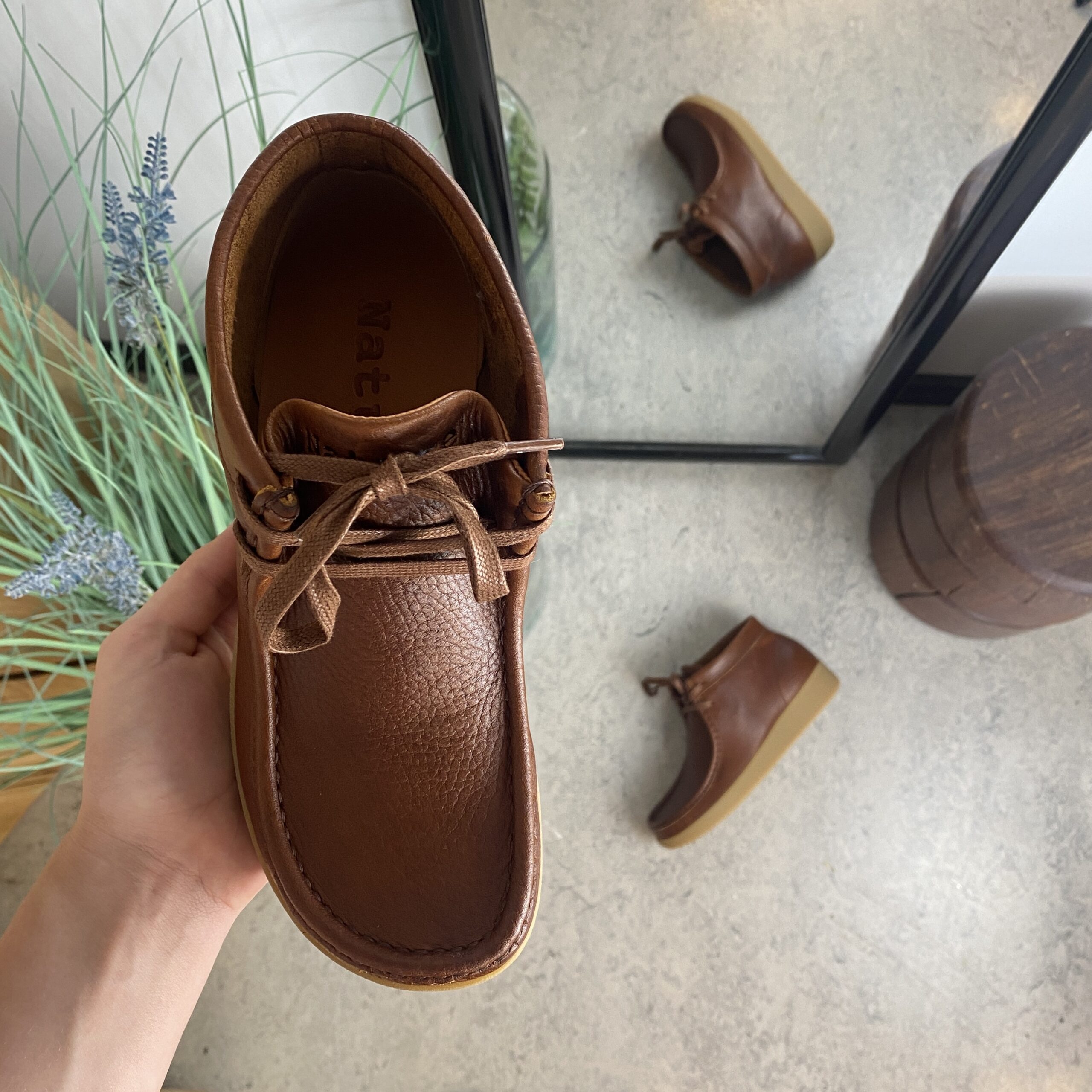 Brun Nature läderskor med snörning