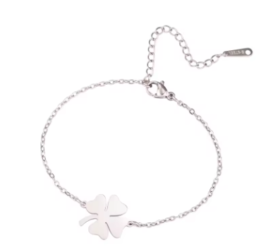 Elegant fyrklöverarmband i silverfärgat rostfritt stål – stilrent lyckosmycke för varje tillfälle