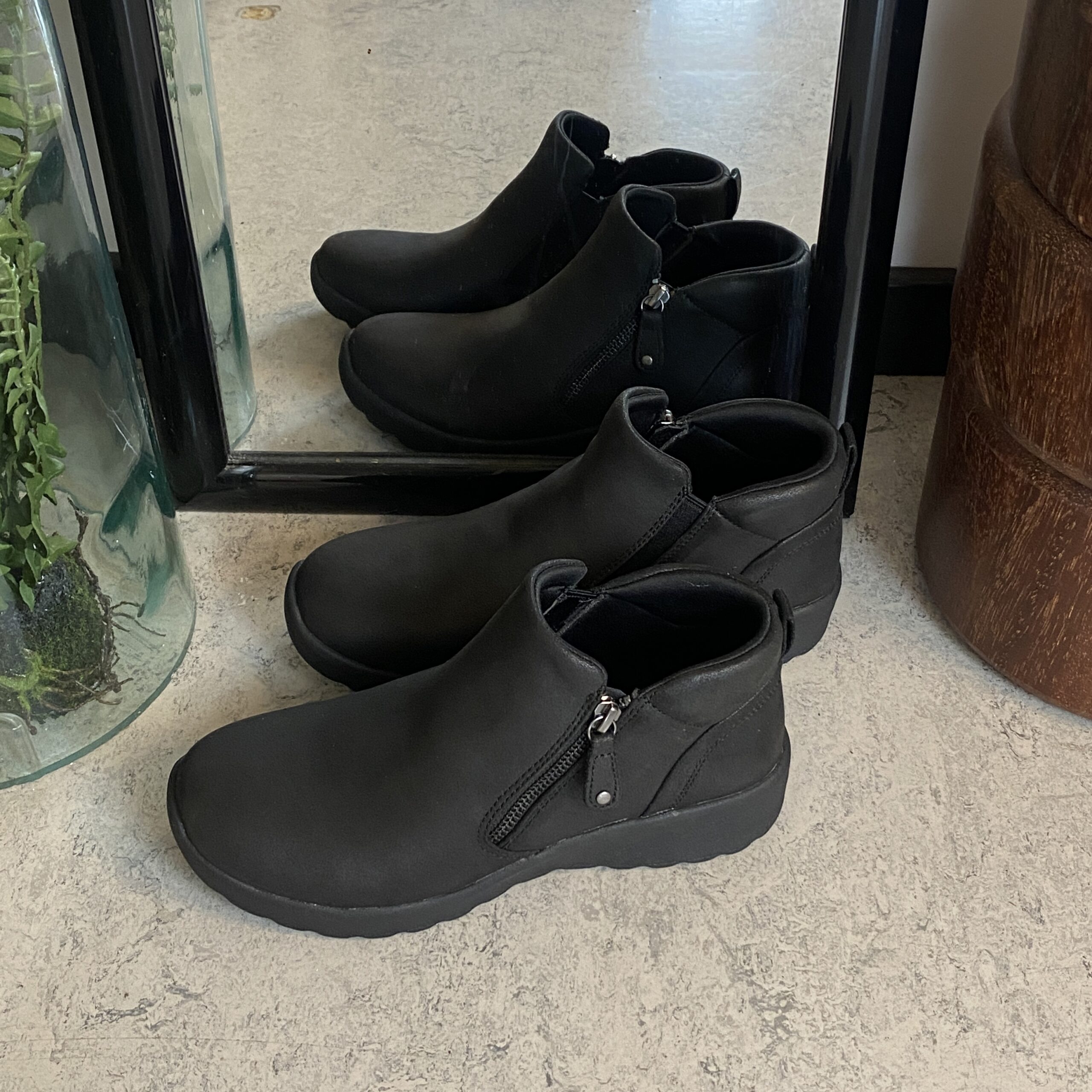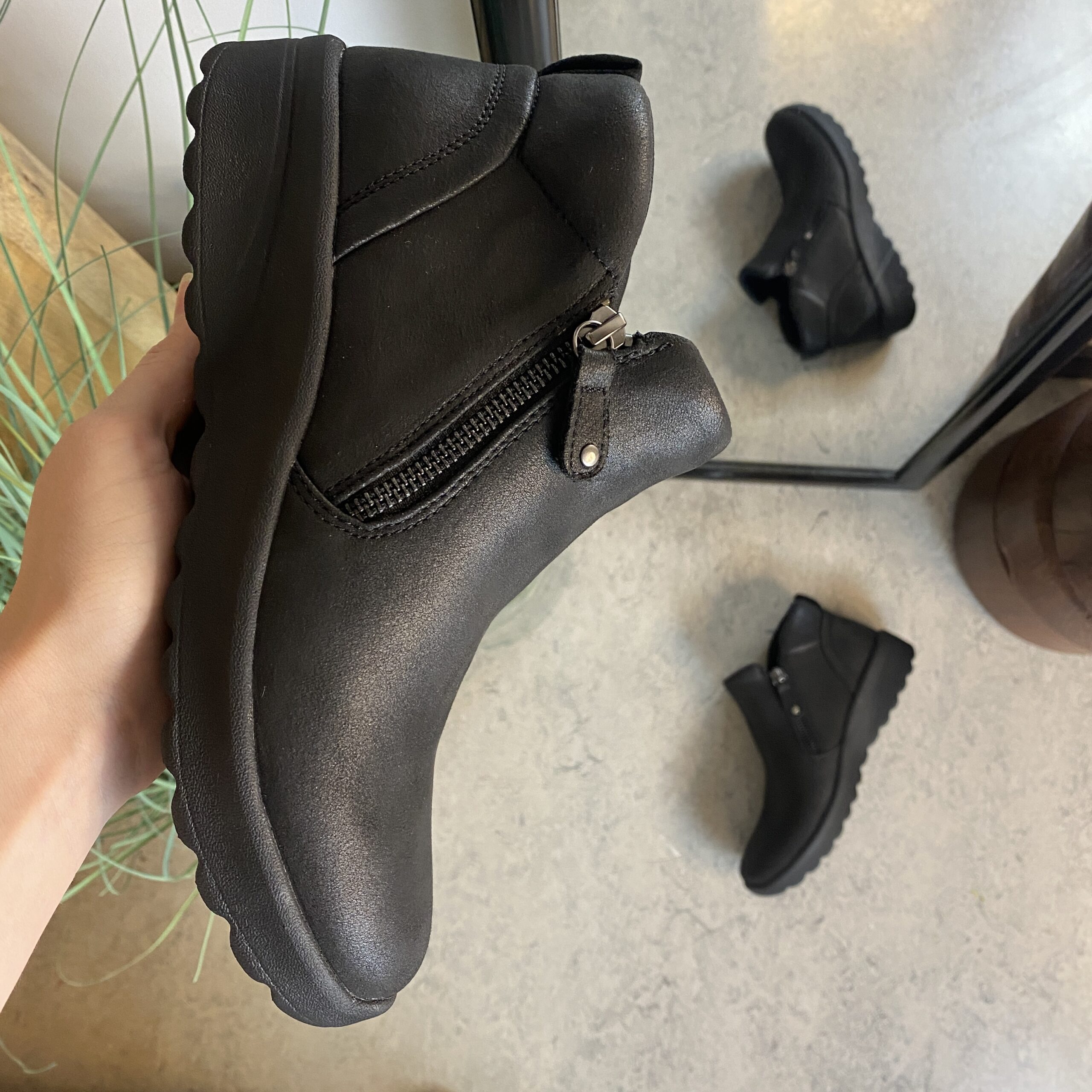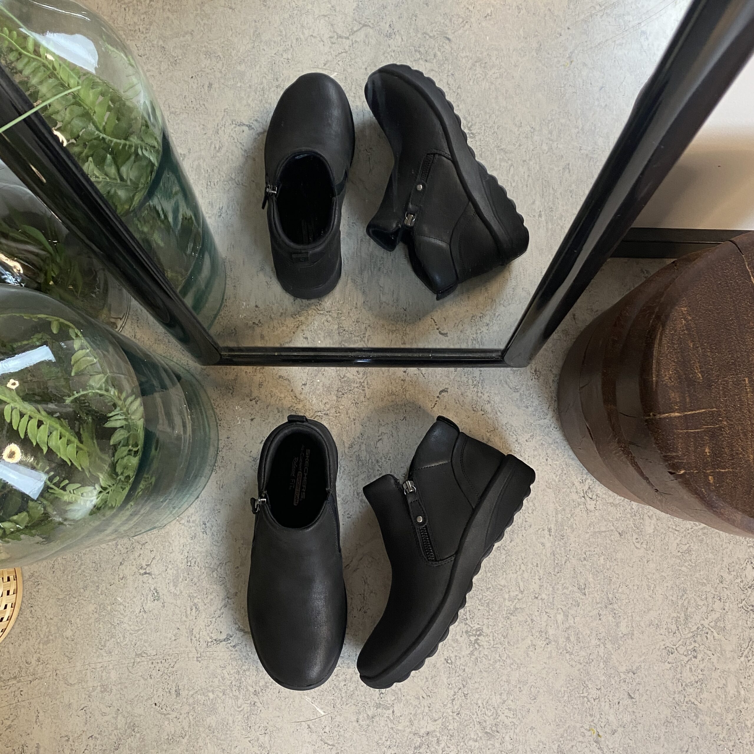 Ovandelen är tillverkad i mikroläder och har dragkedja på sidan, vilket gör den enkel att ta av och på.