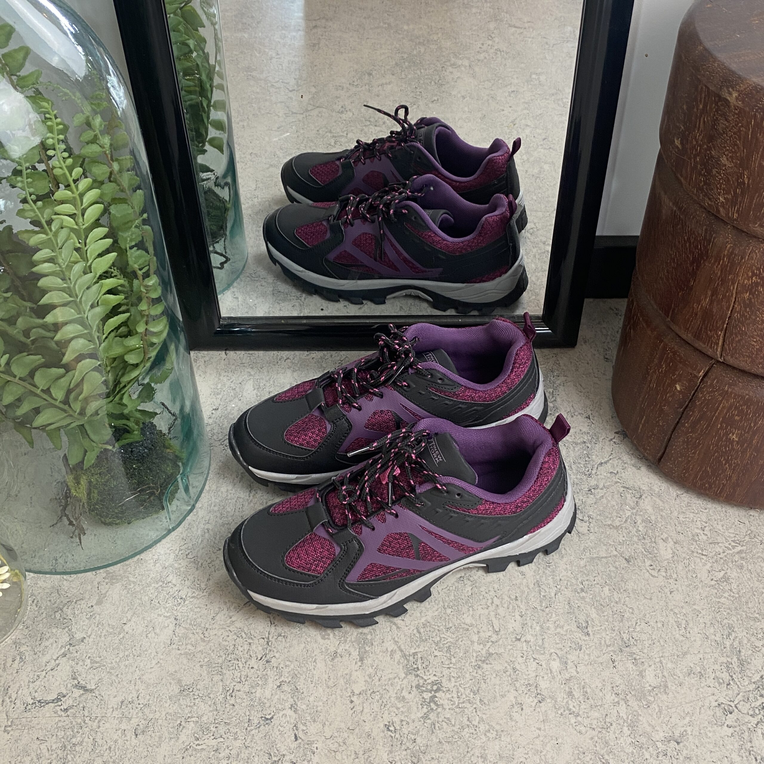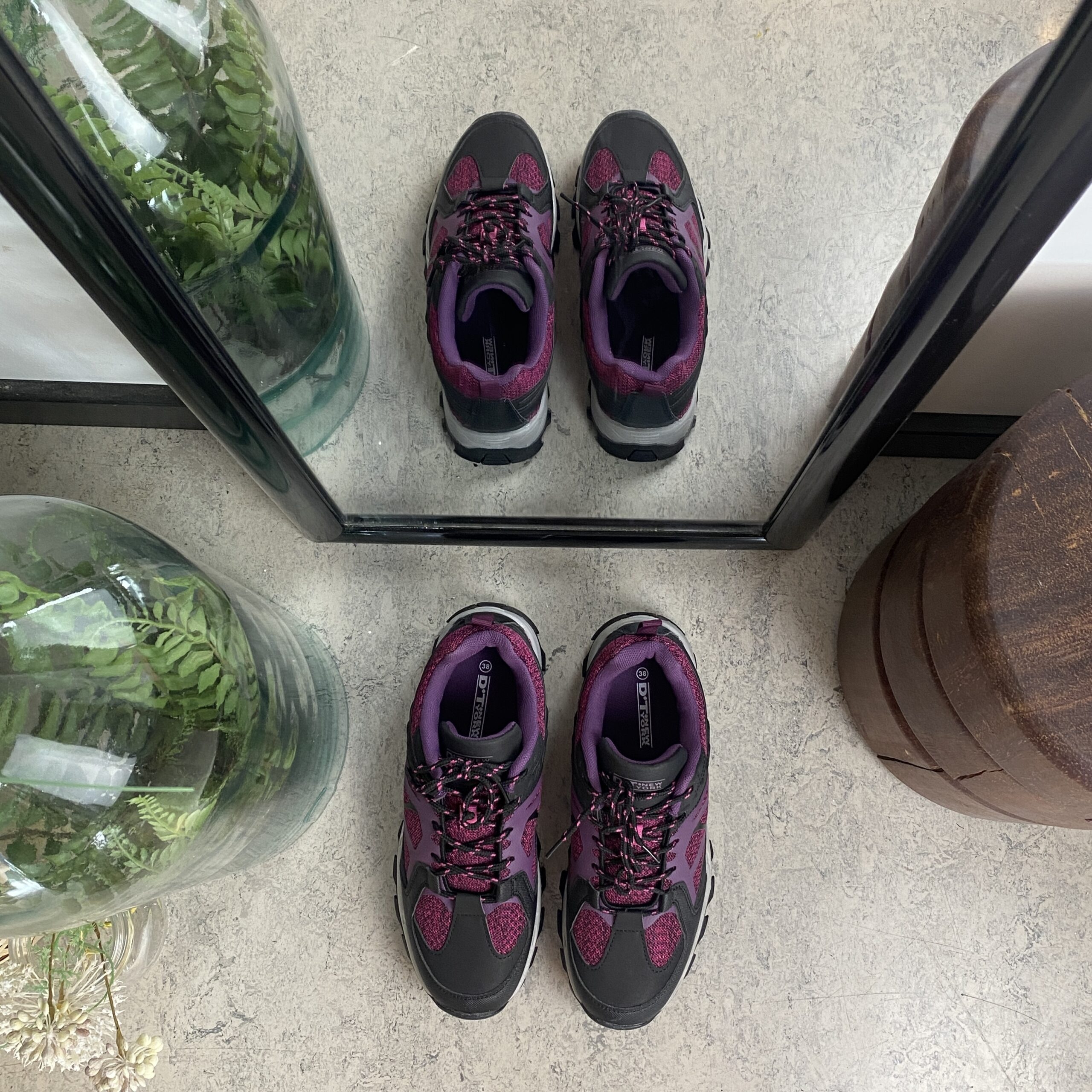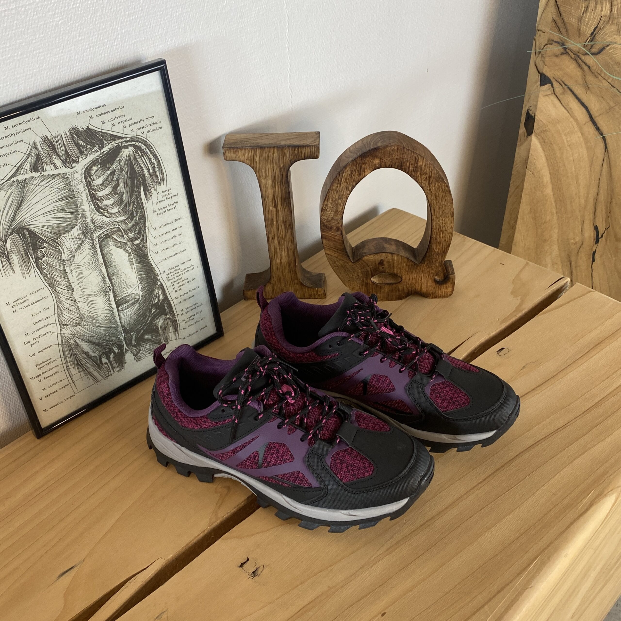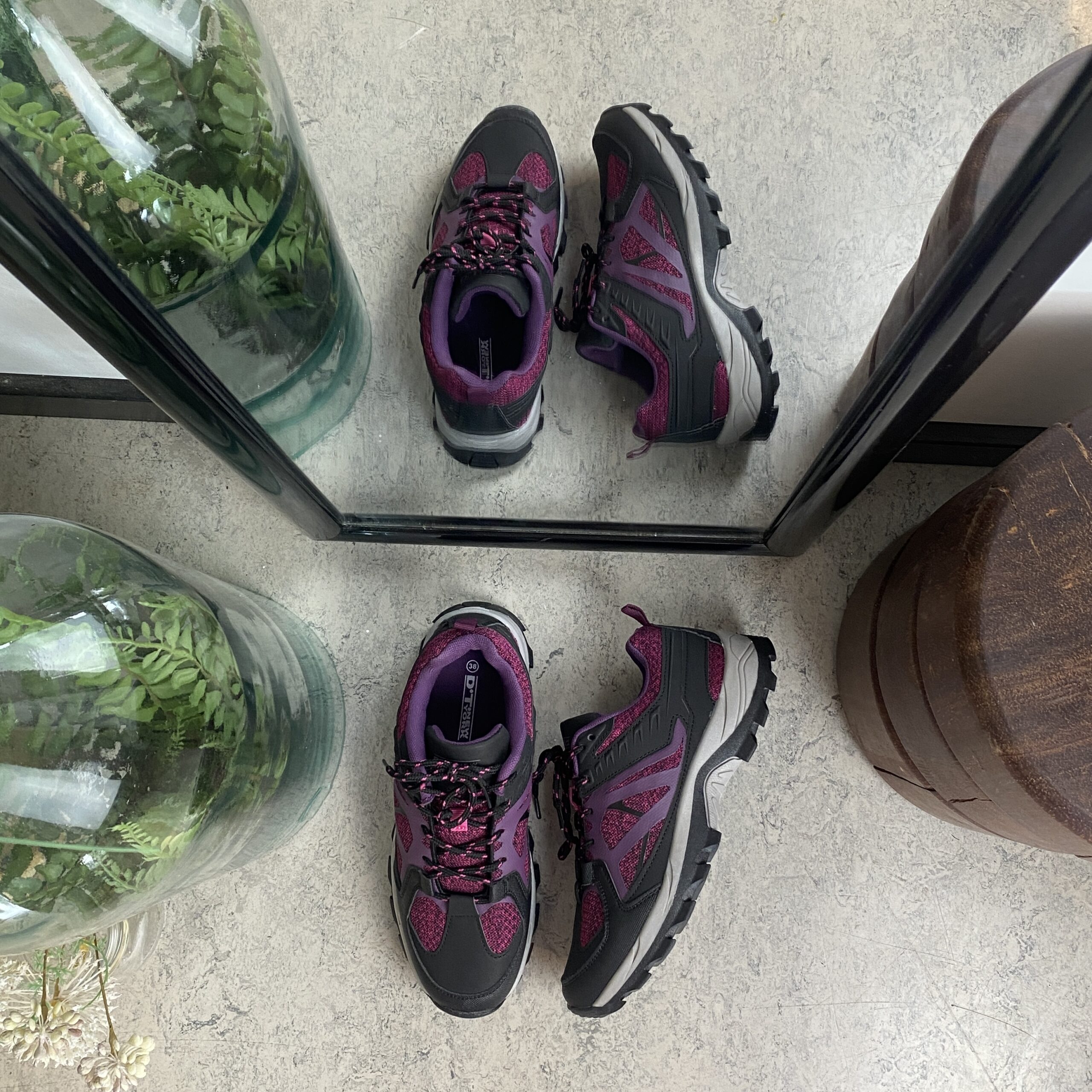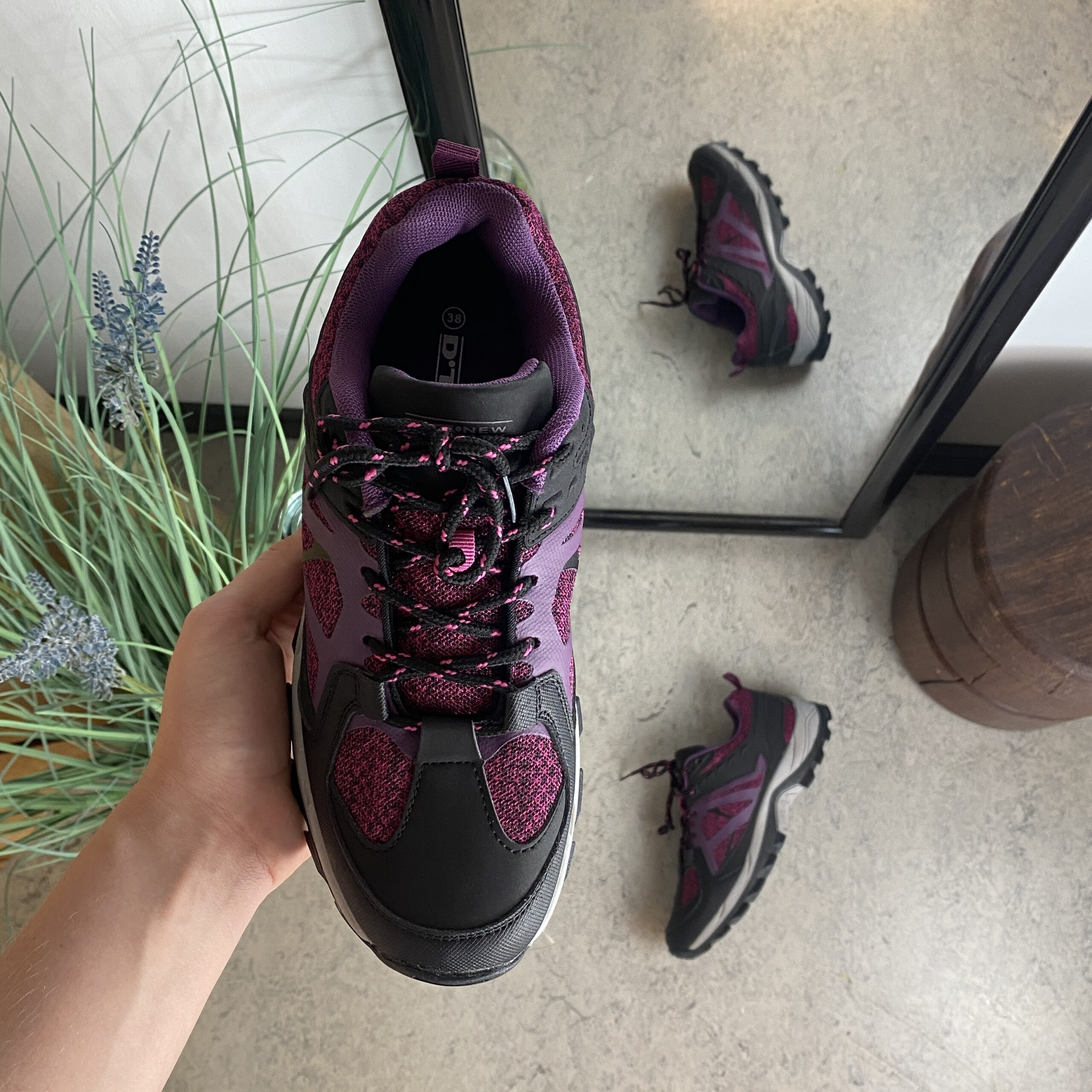 Funktionell vandringsko i lila med ventilerad mesh och stötdämpande sula