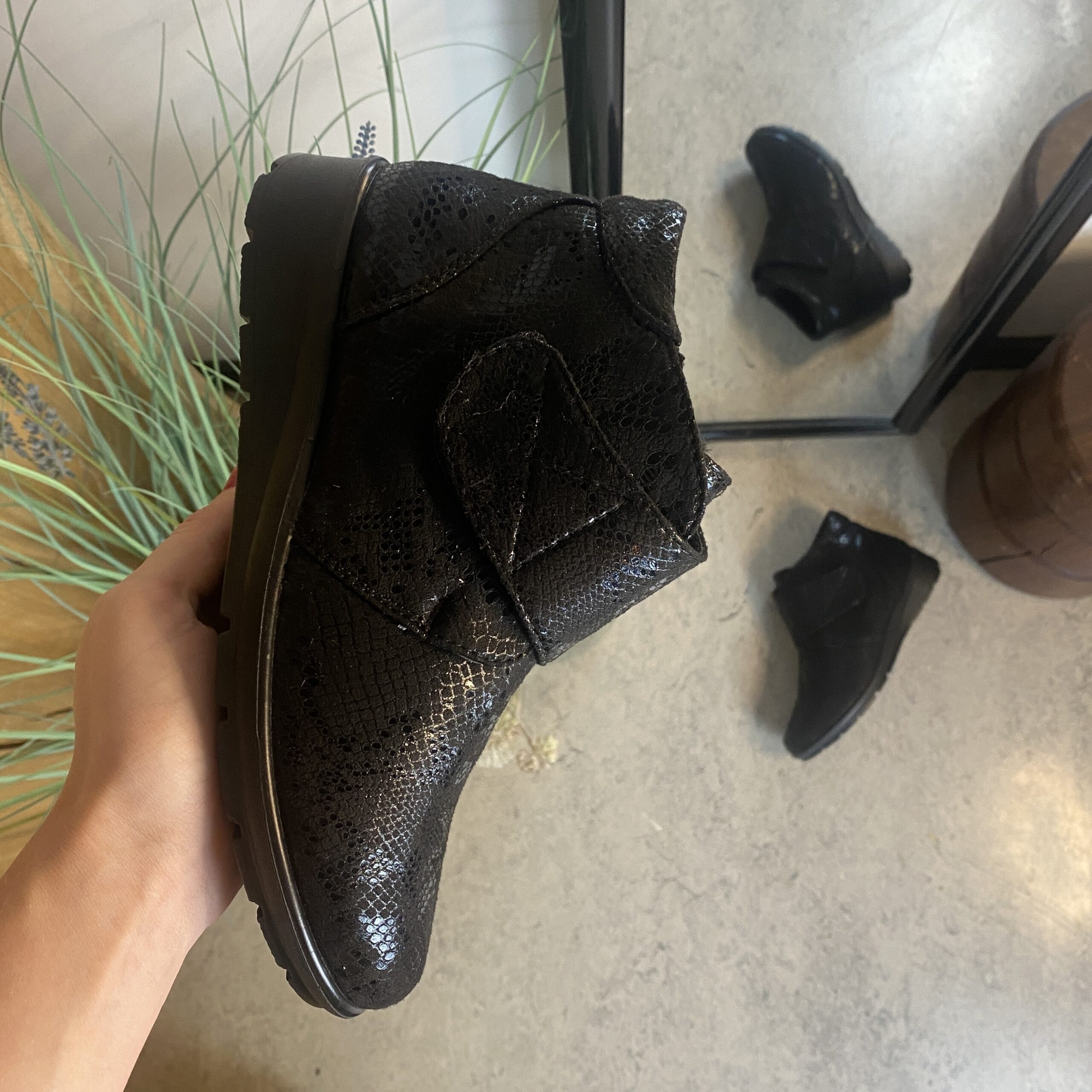 Kort damstövel med kardborreband