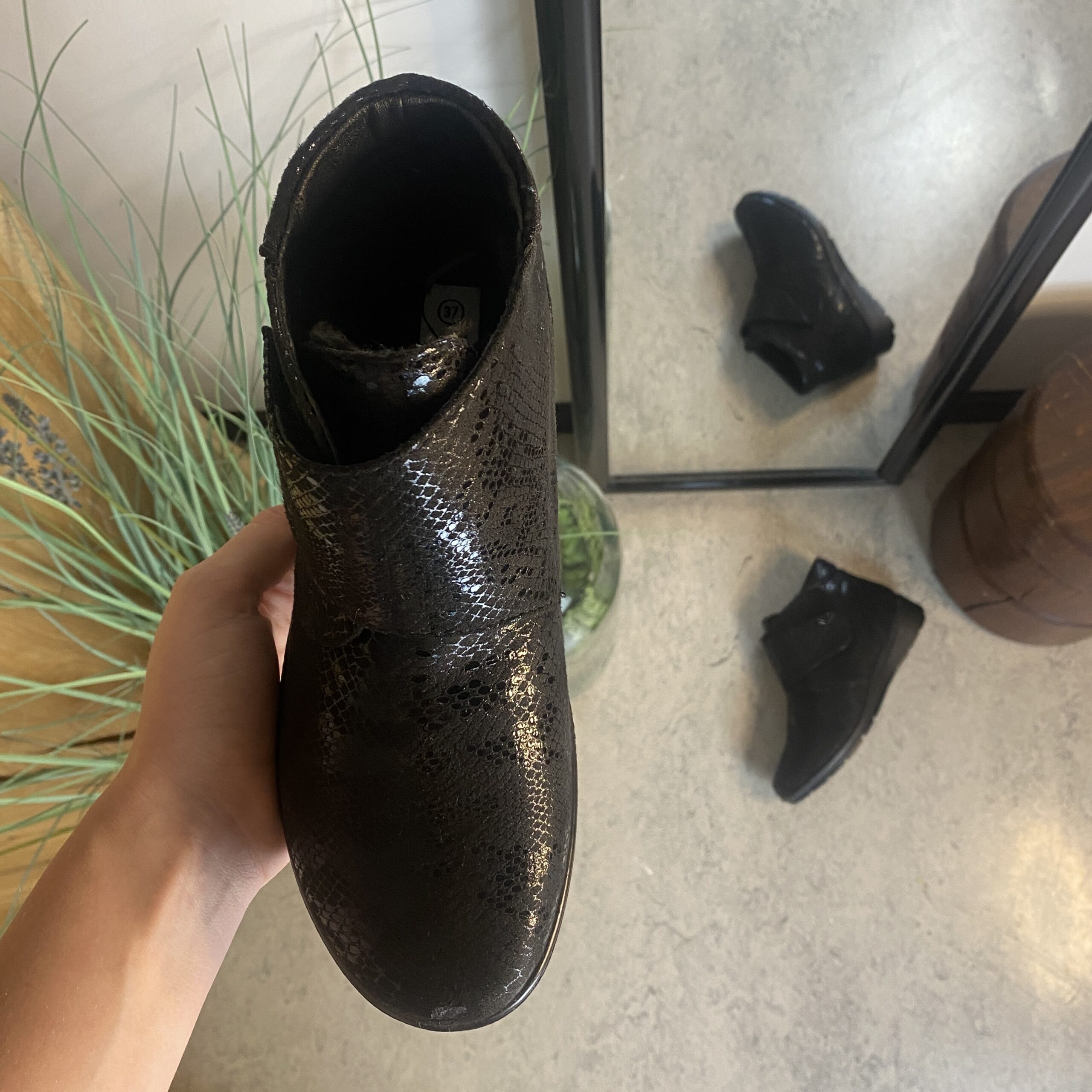 - Material: Mjuk ovandel med lätt präglat mönster, vilket ger ett elegant utseende.