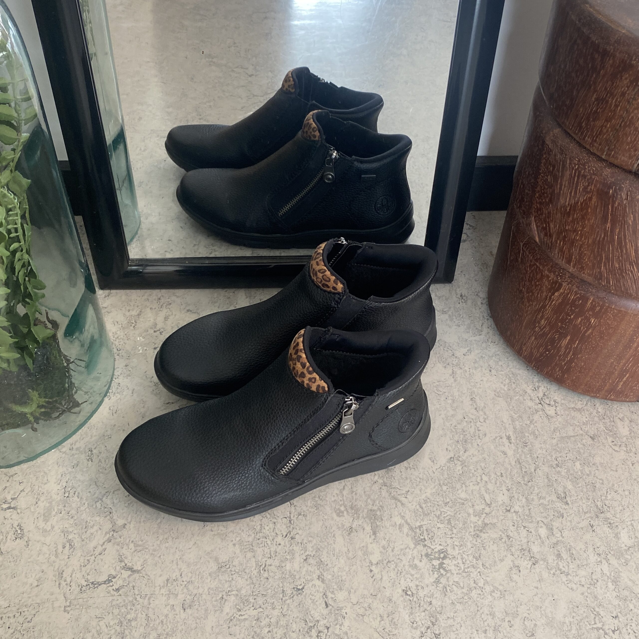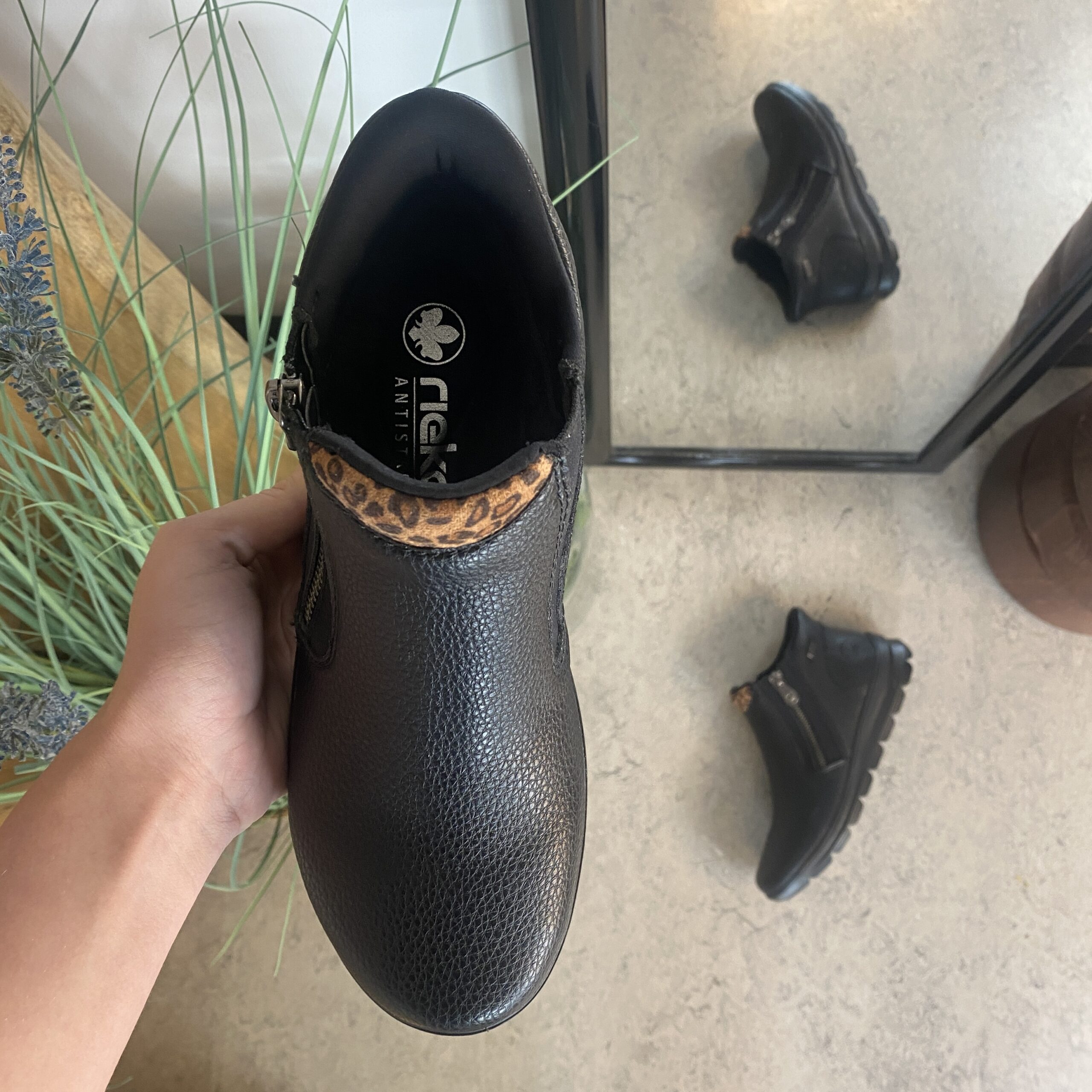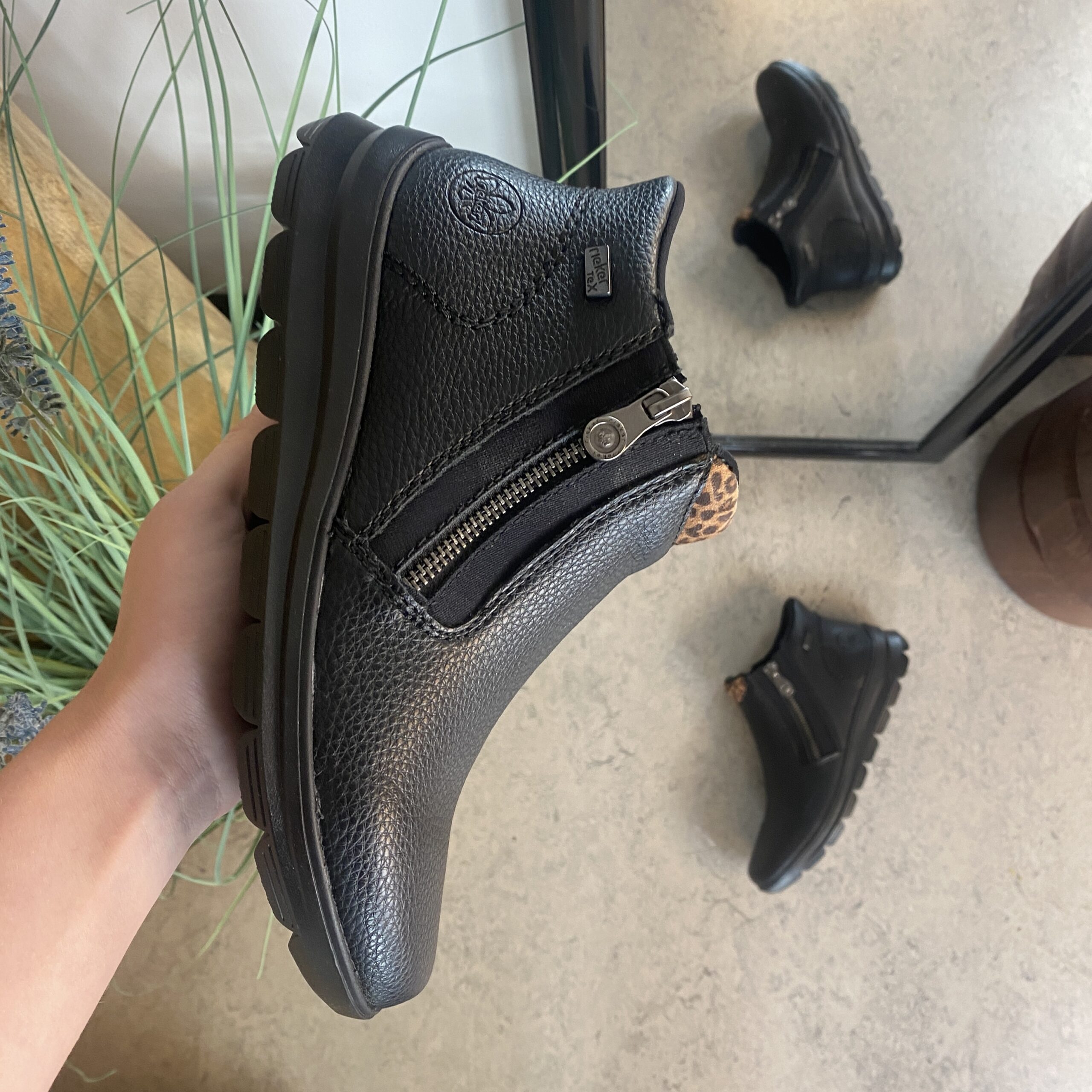 Stöveln är Rieker-Tex vattenavvisande, vilket håller dina fötter torra i alla väder.