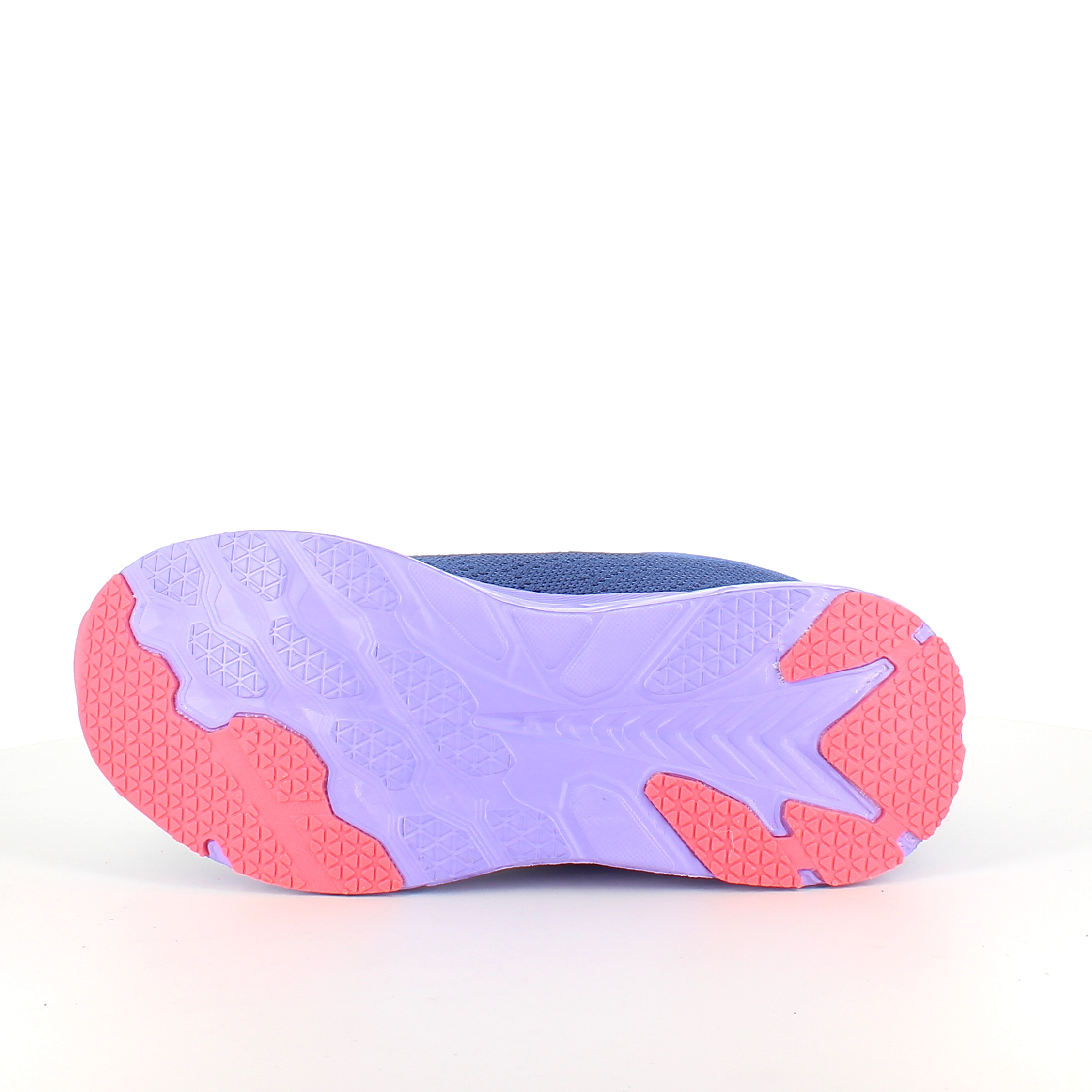 Den lila mellansulan är stötdämpande, medan yttersulan säkerställer att man står stadigt på olika underlag.