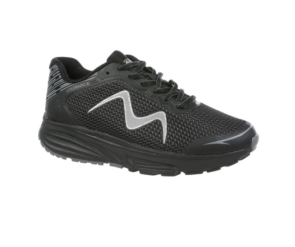 - Modernt design och komfort: MBT Colorado presenterar en härlig mesh-överdel i en stilren svart färg med grå detaljer och en mjuk sula, som säkerställer en behaglig upplevelse hela dagen.