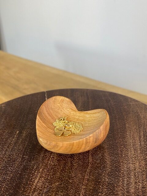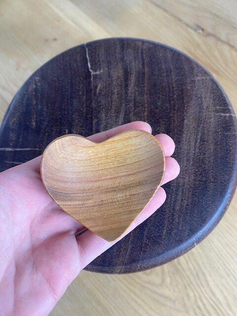Denna hjärtformade träskål är både dekorativ och funktionell.