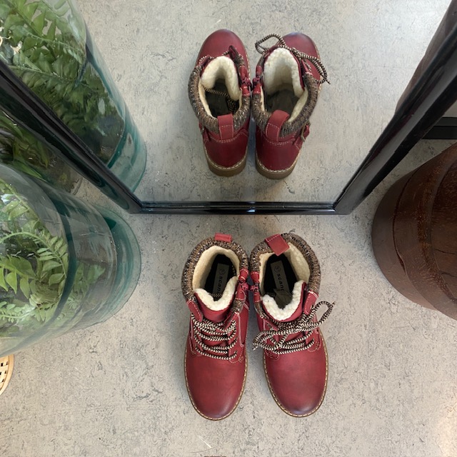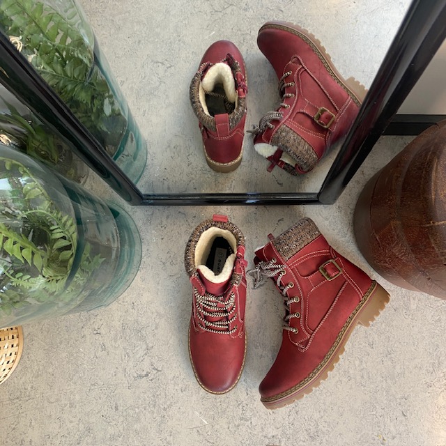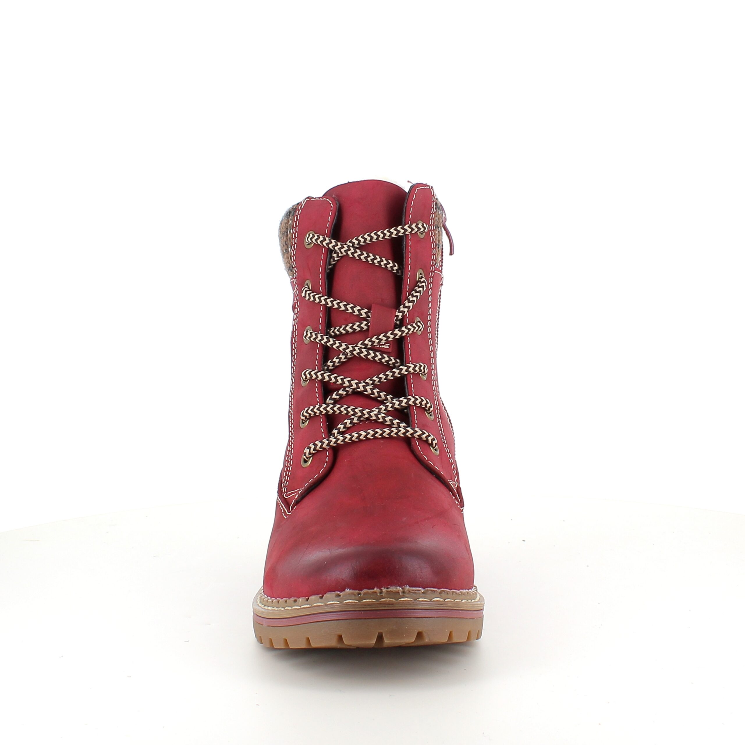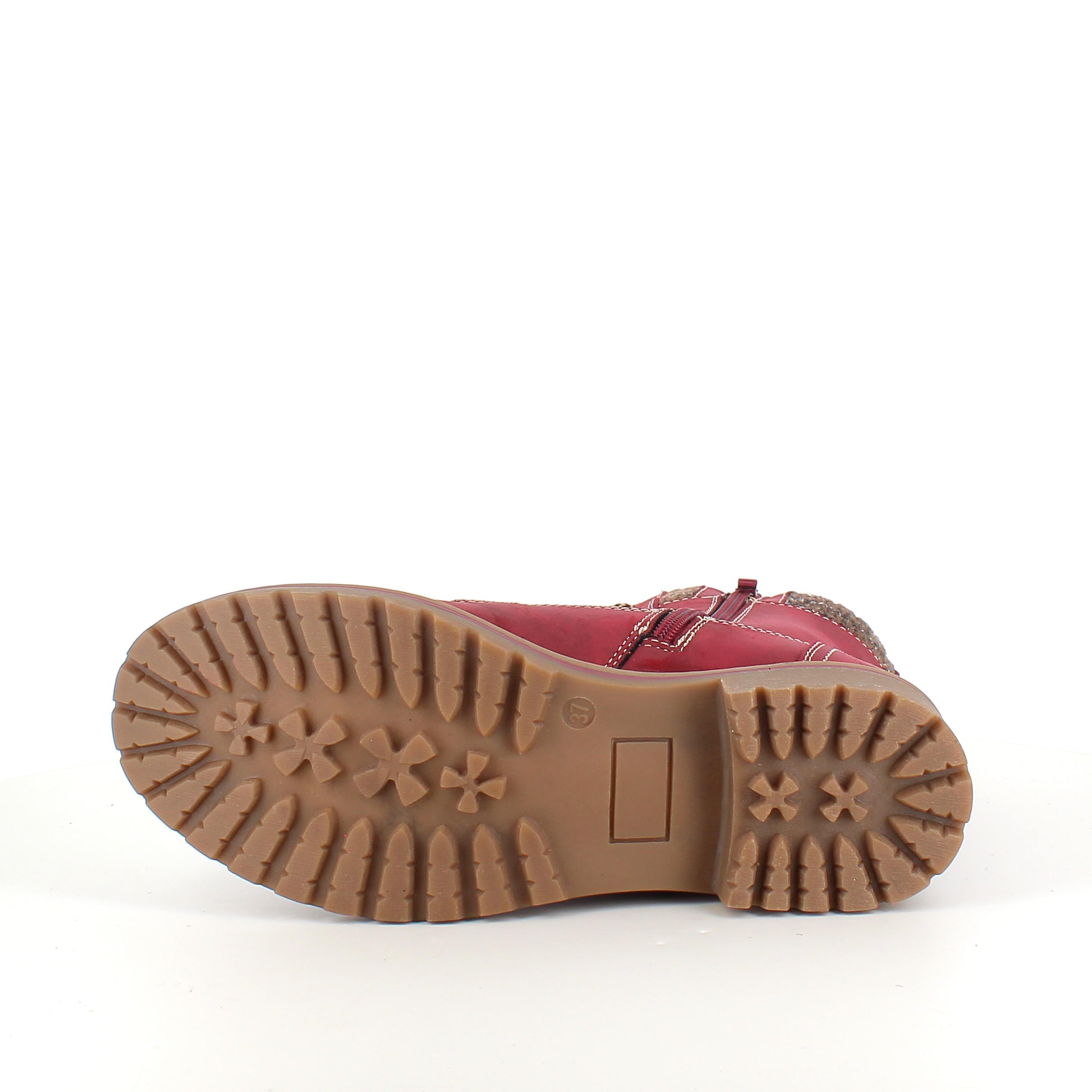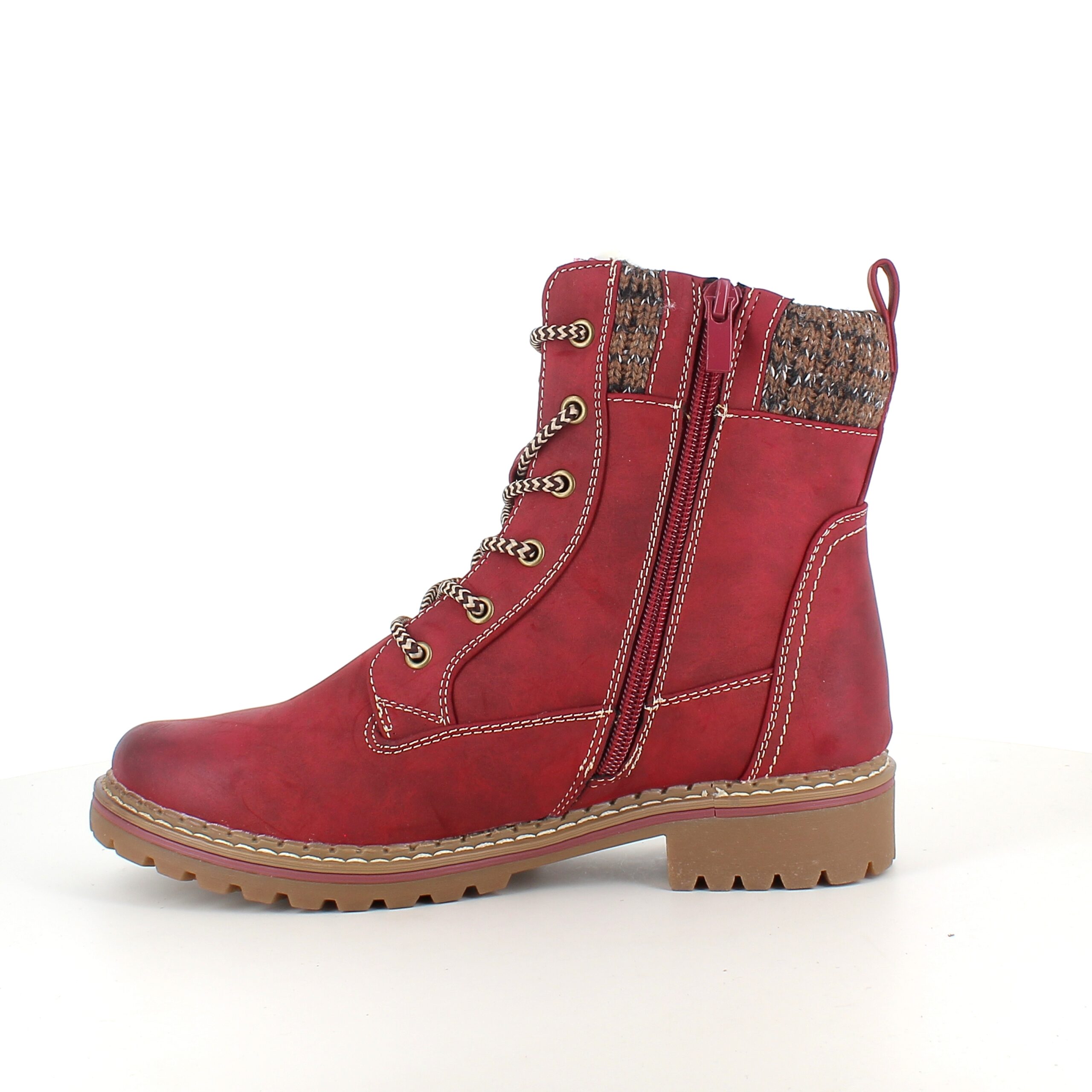 Röd damstövel med snörning, dragkedja och varmt foder – dekorativt spänne och TPR-sula