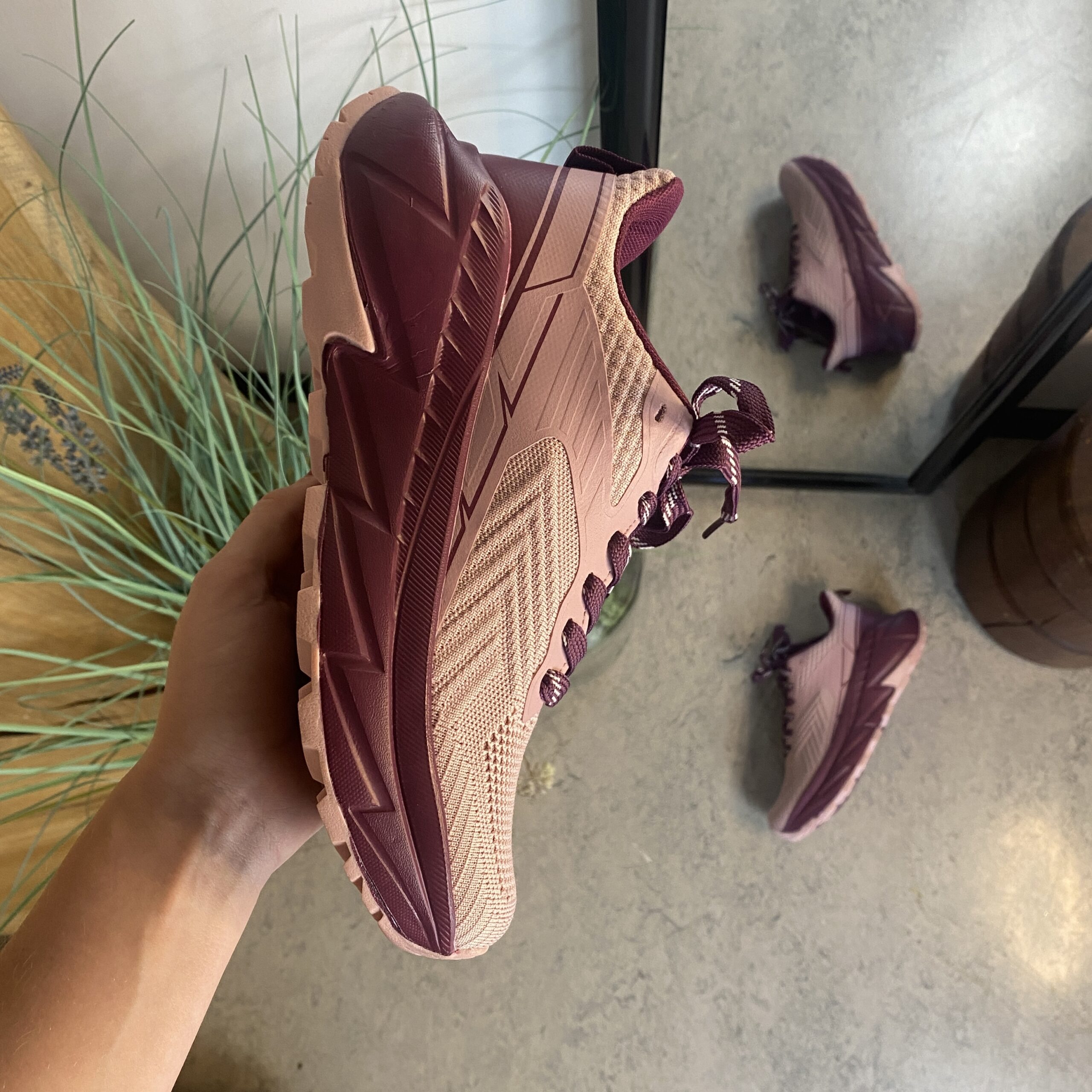 Yttersulan har ett djupt mönster och flexibla räfflor som ger ett stabilt grepp och stabilitet på olika underlag – perfekt för både inomhus- och utomhusbruk.
