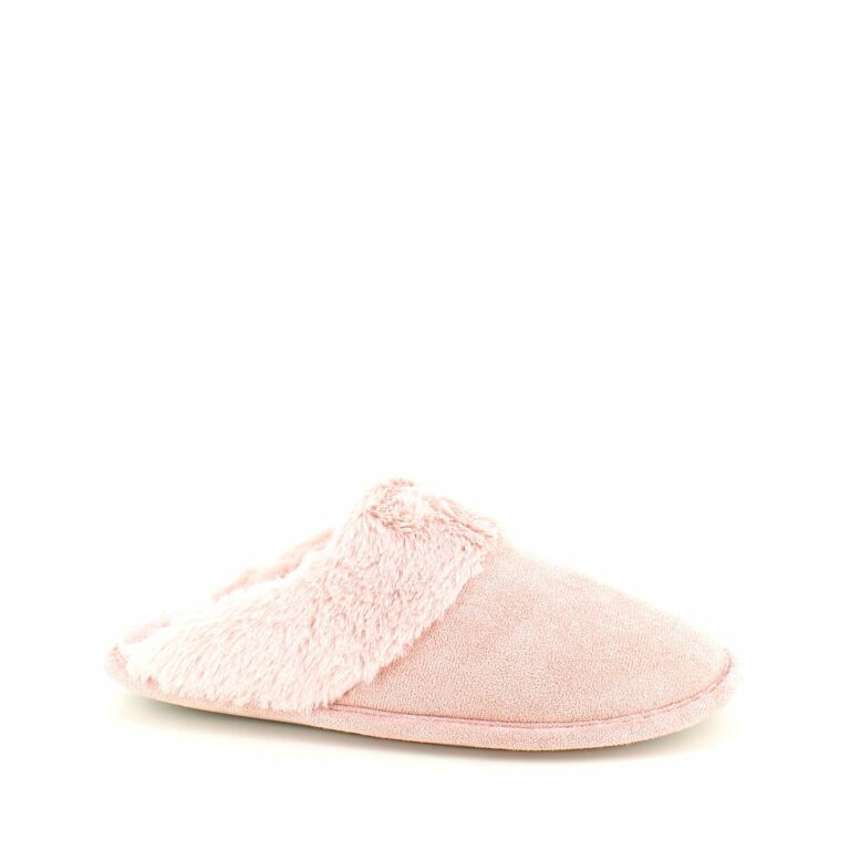 Rosa Slip on tofflor med mjukt syntetiskt päls.