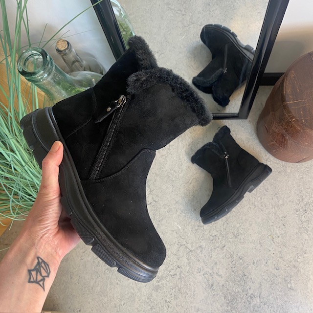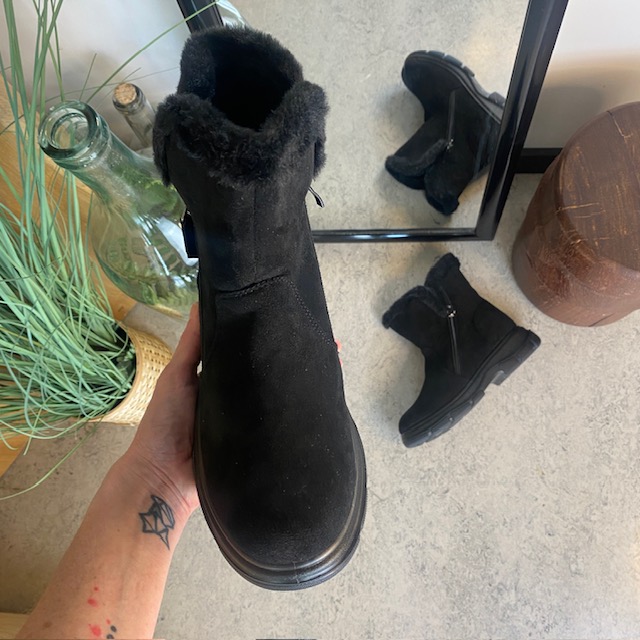 Stöveln är fodrad med varmt foder, dessutom är stöveln utrustad med två dragkedjor, en på insidan och en på utsidan, vilket gör det lätt att ta av och på stöveln.