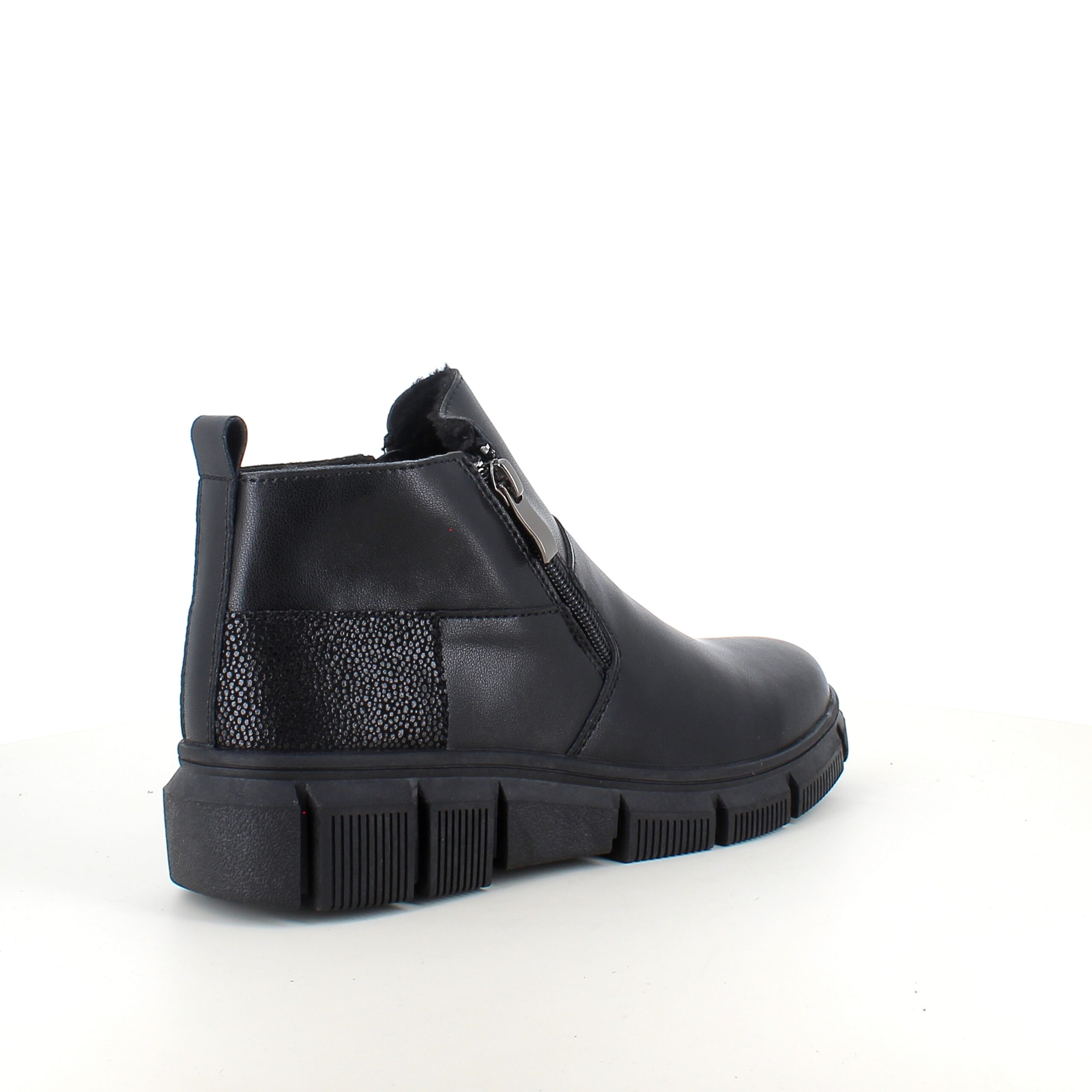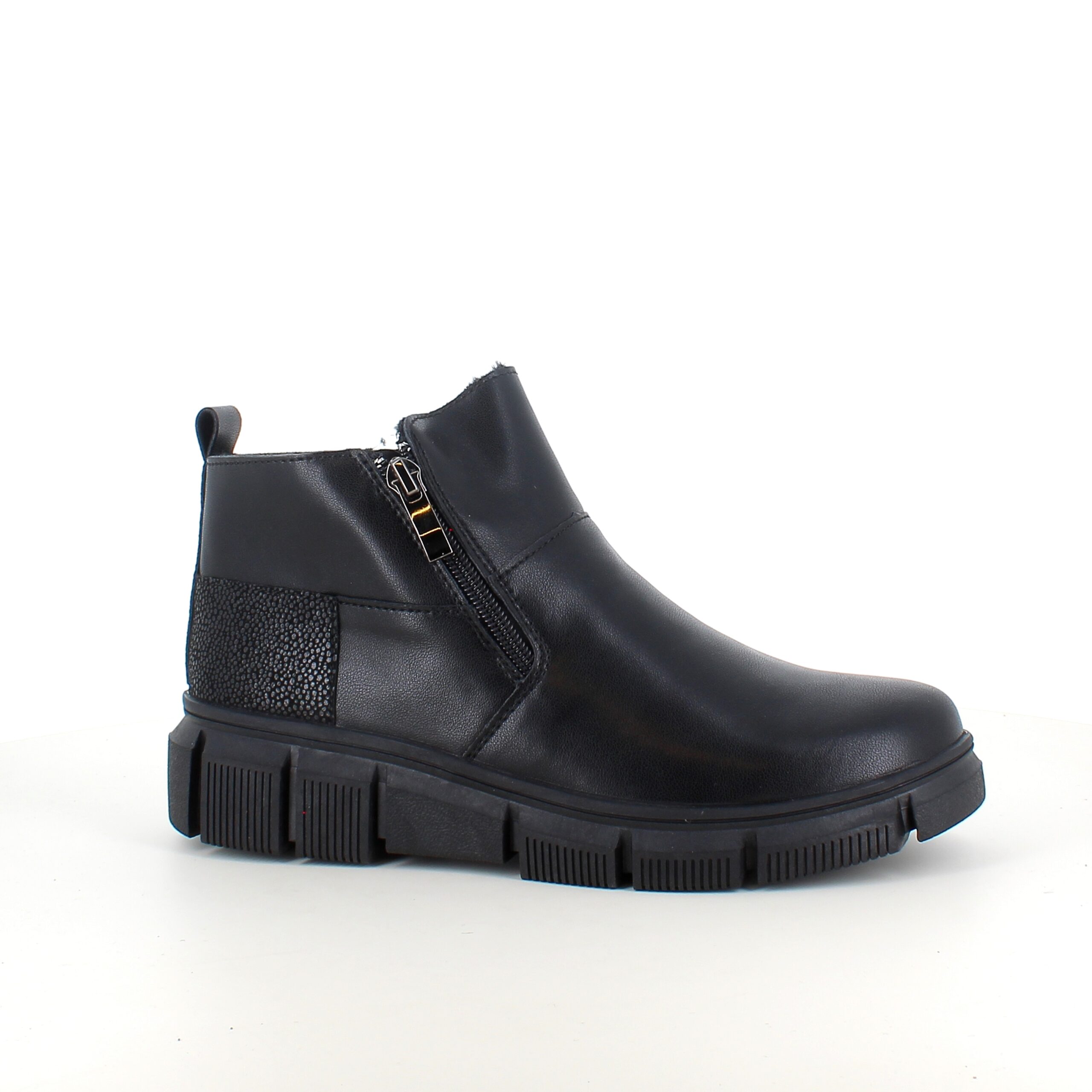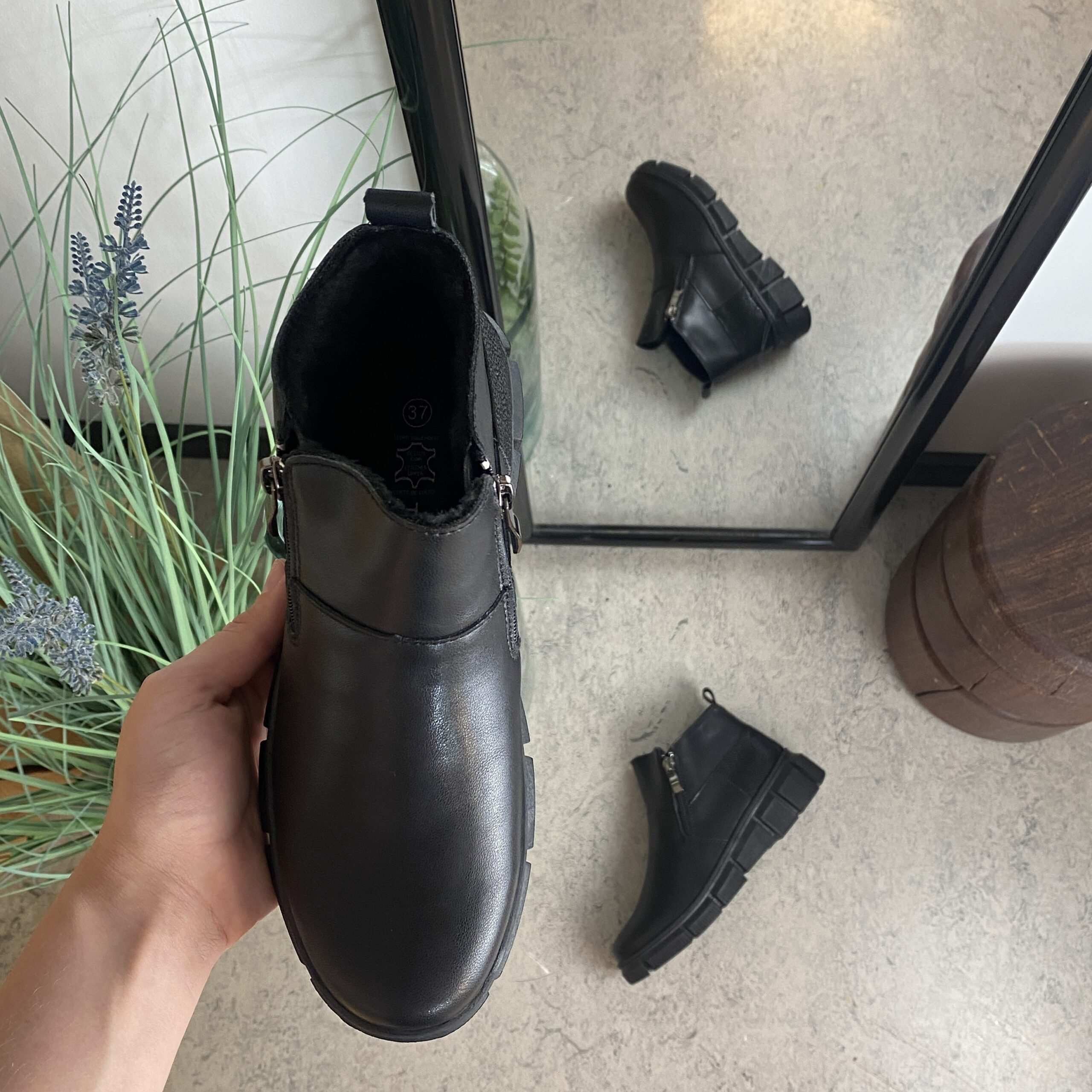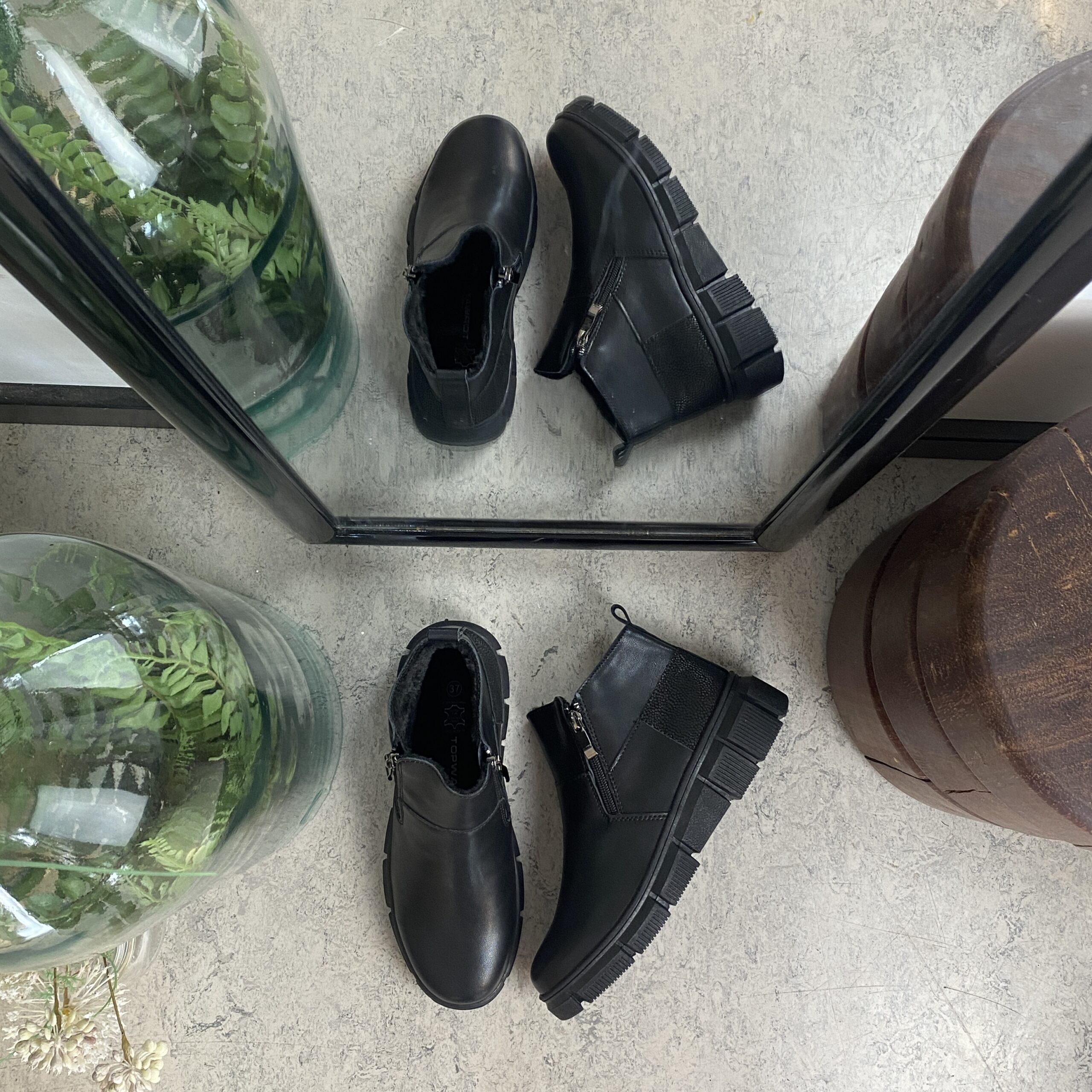 Den här svarta ankelstöveln kombinerar klassisk design med praktiska detaljer. Stöveln är fodrad med mjukt och varmt foder, som säkerställer komfort under de kalla månaderna.