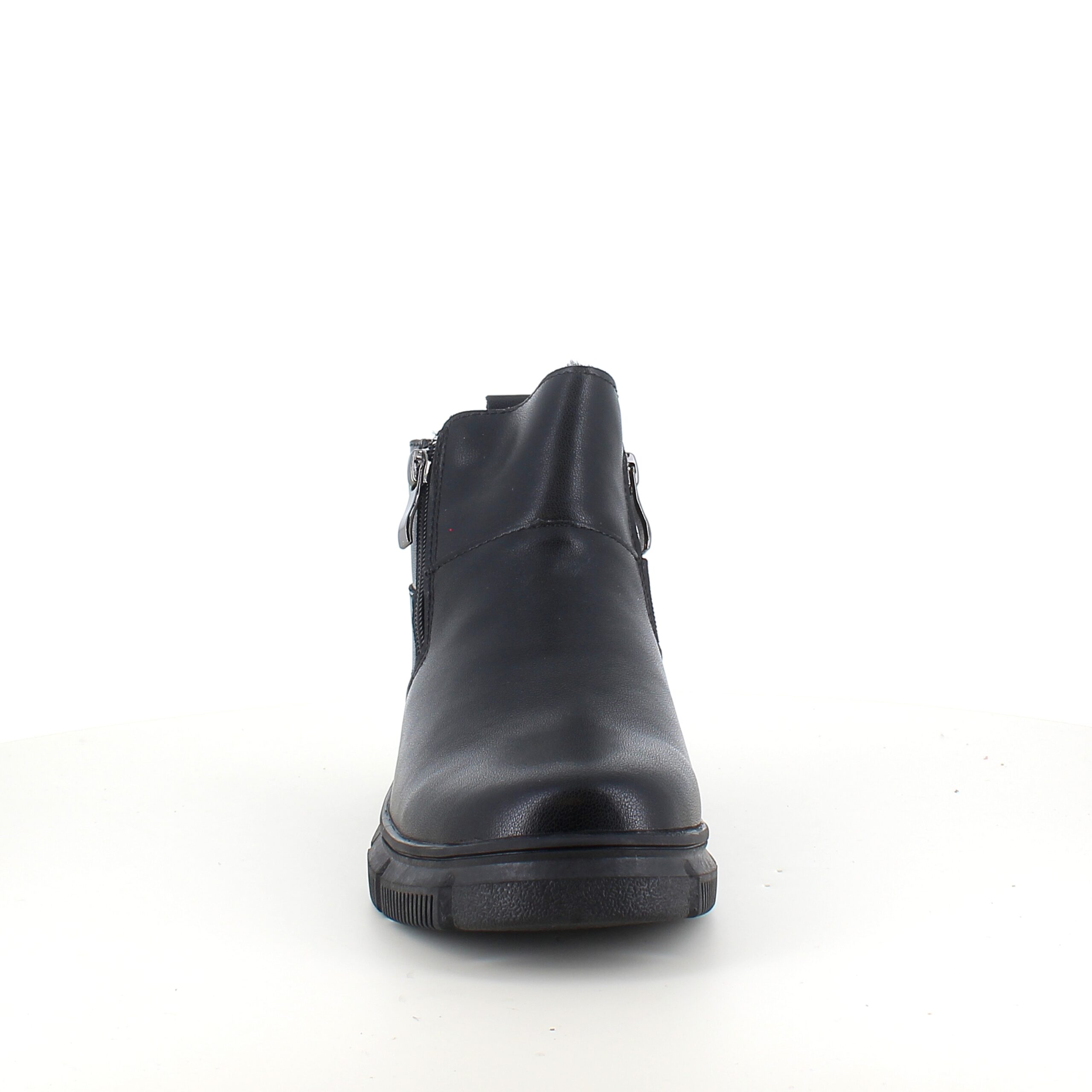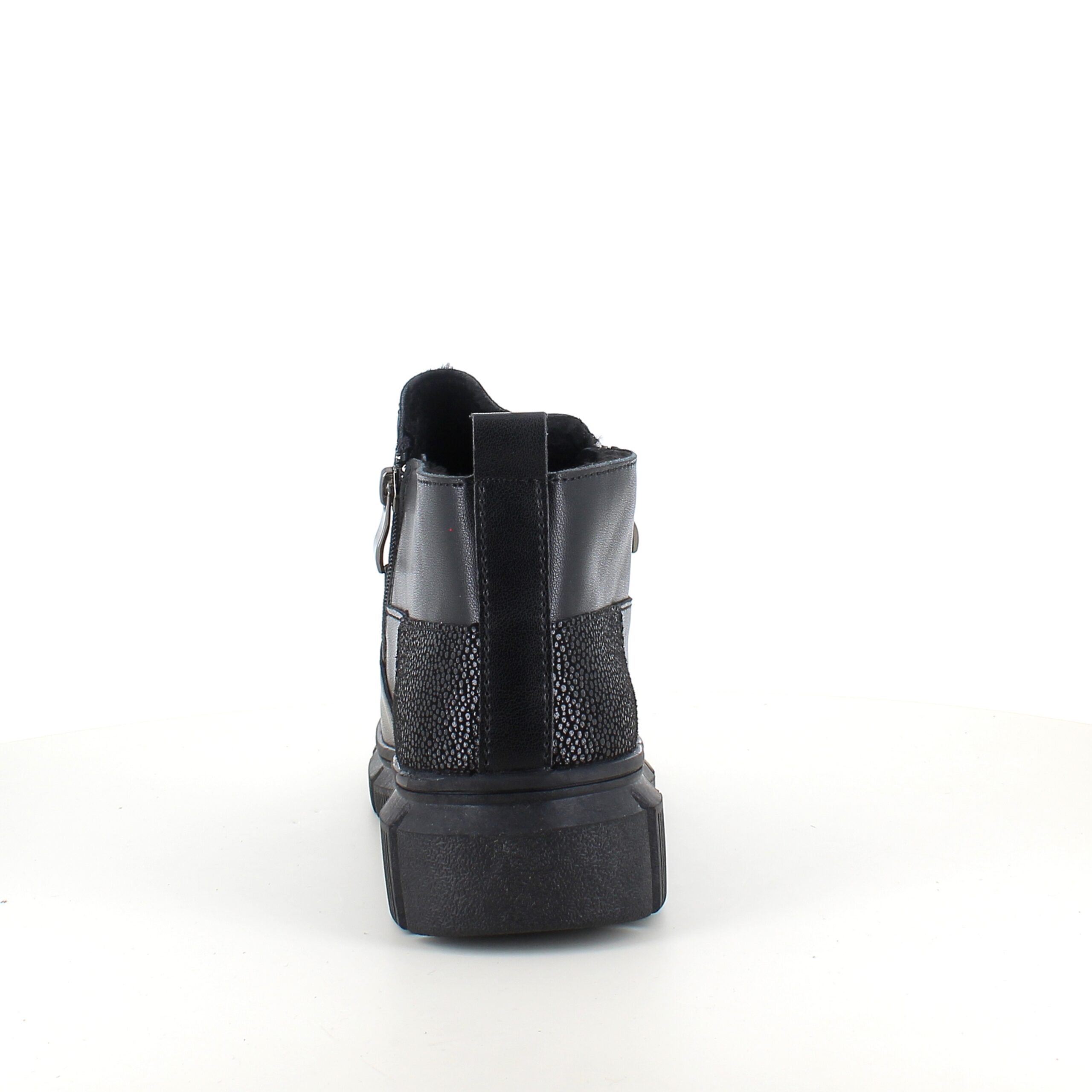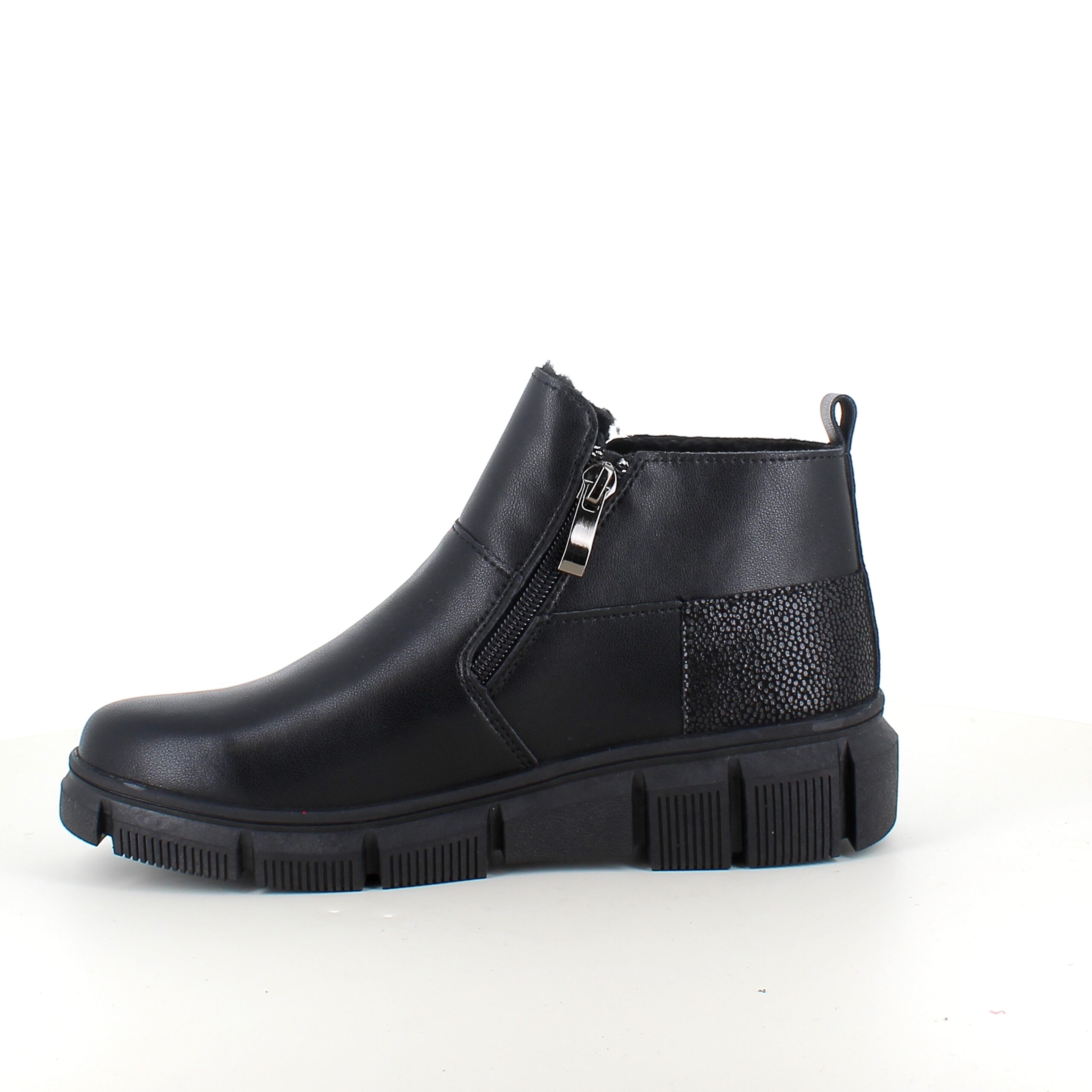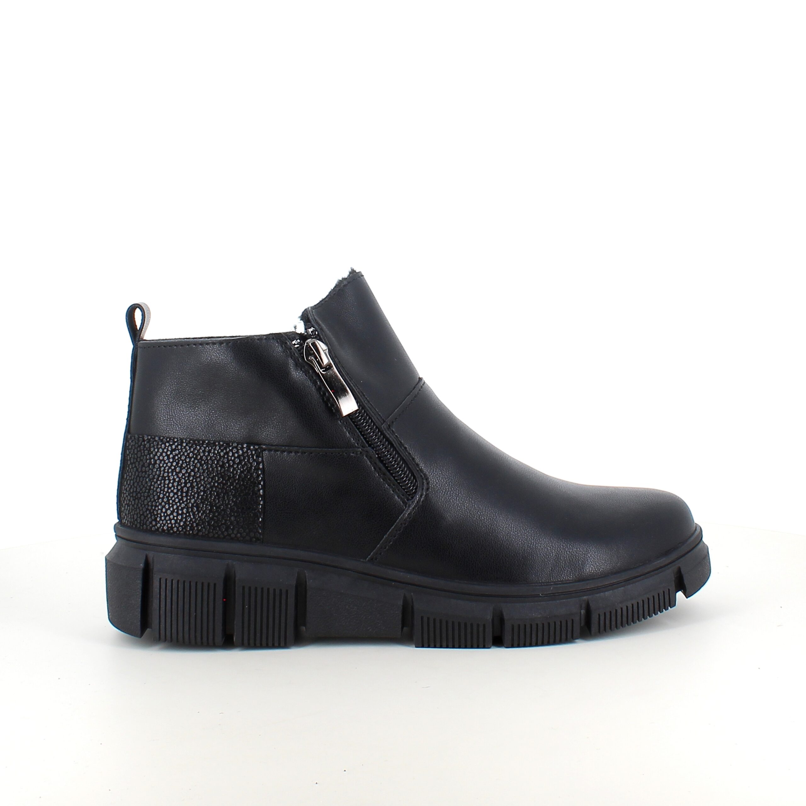Den här svarta ankelstöveln kombinerar klassisk design med praktiska detaljer. Stöveln är fodrad med mjukt och varmt foder, som säkerställer komfort under de kalla månaderna.