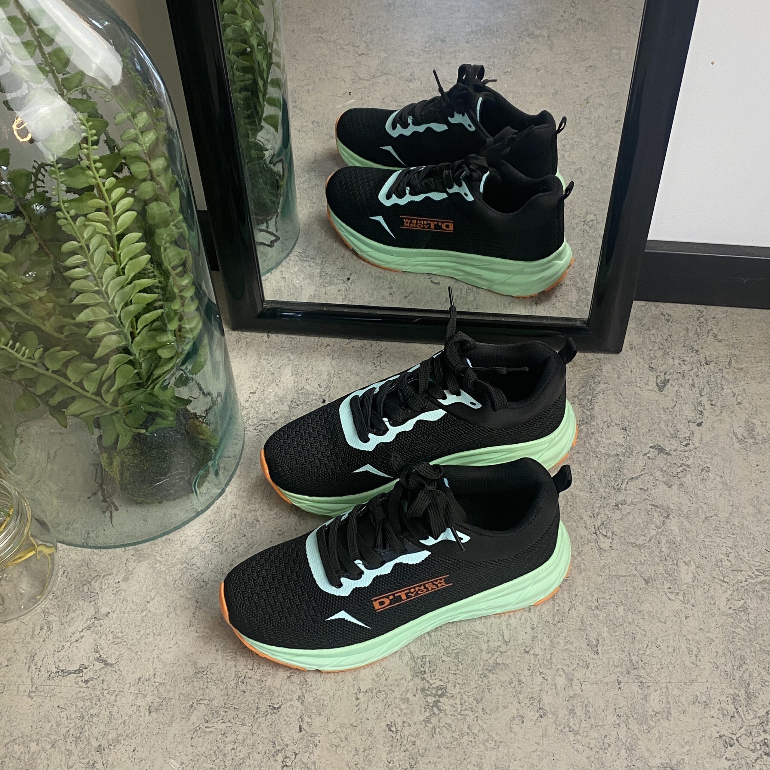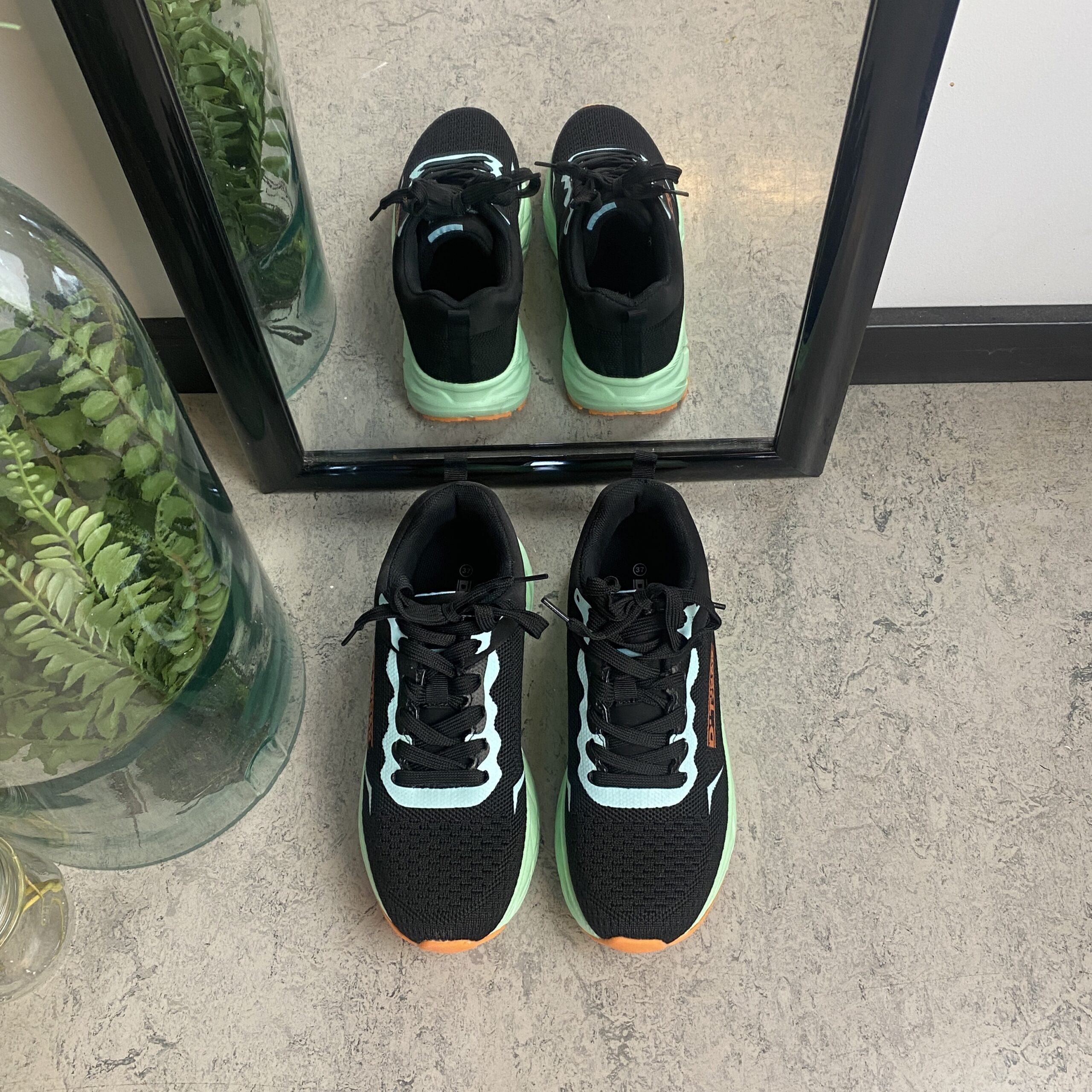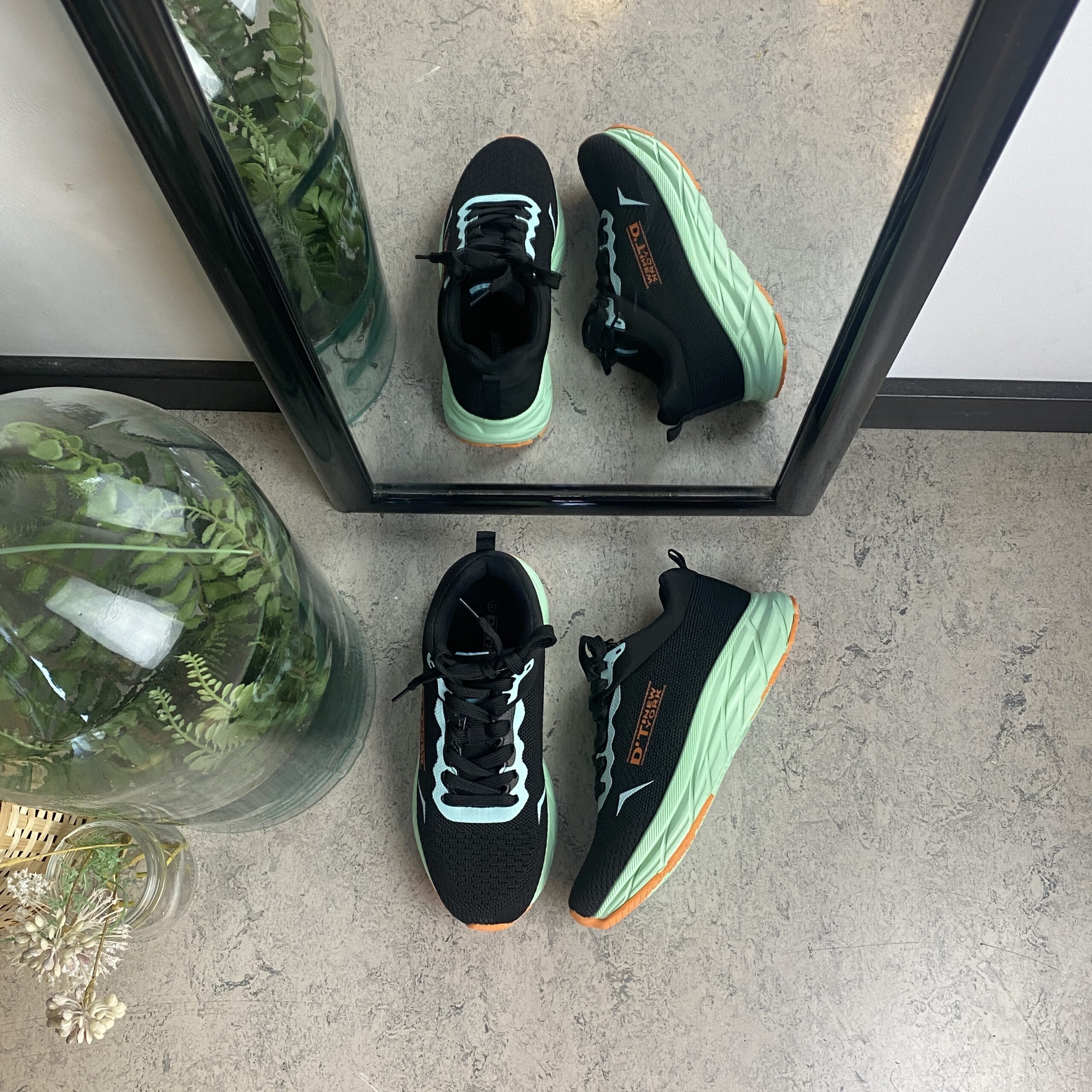 Mellansulan i mintgrön ger effektiv stötdämpning, samtidigt som yttersulan säkerställer ett stabilt fotfäste på olika underlag.