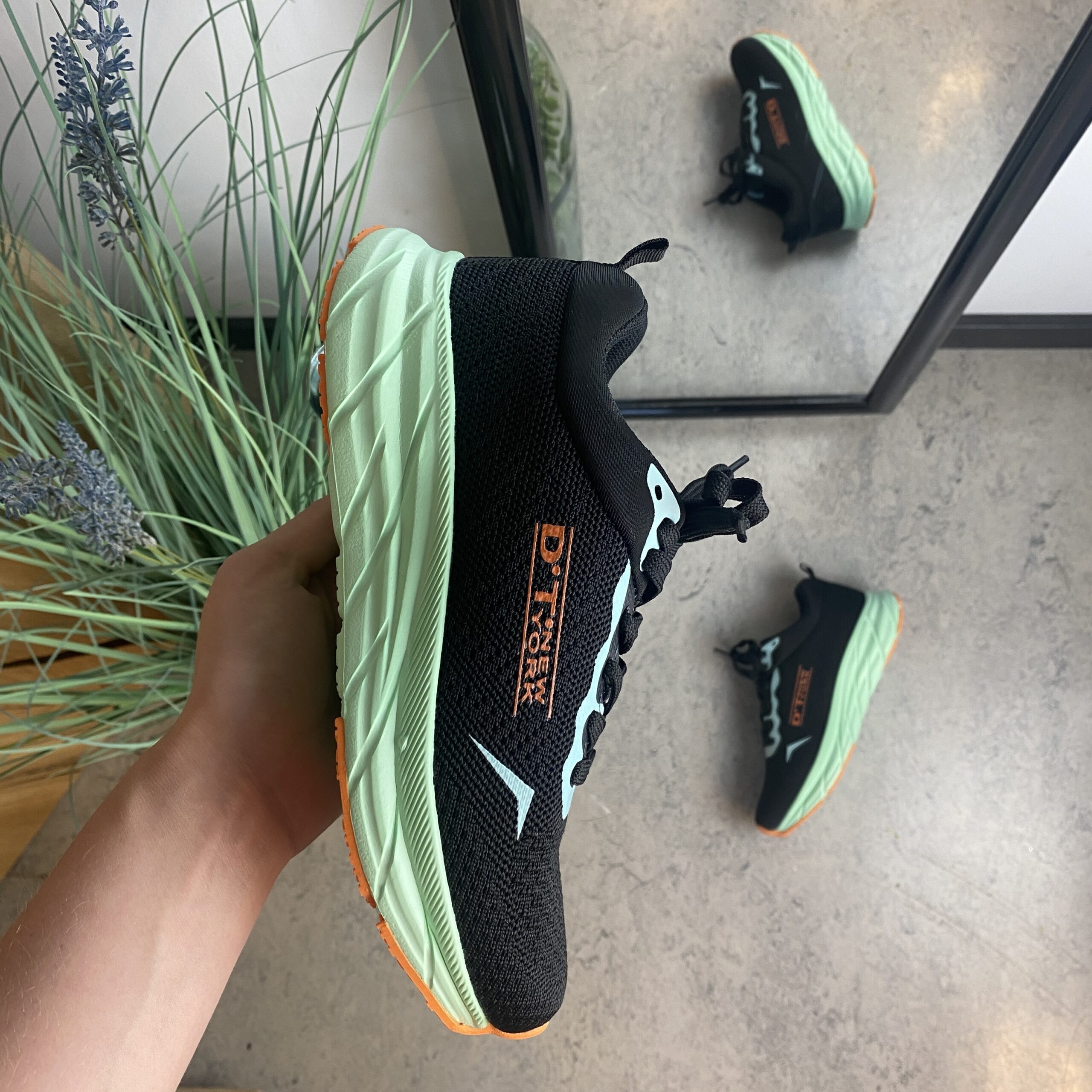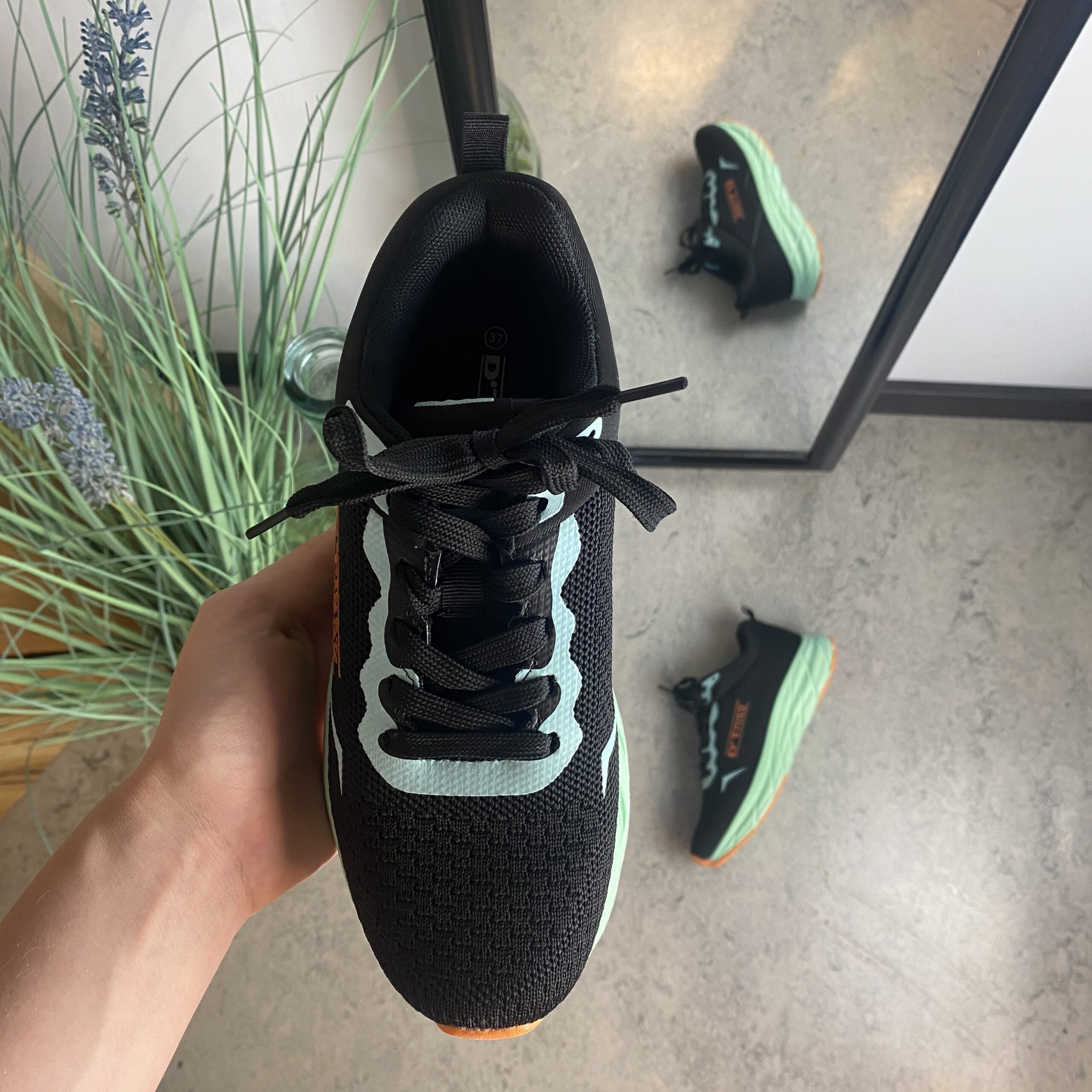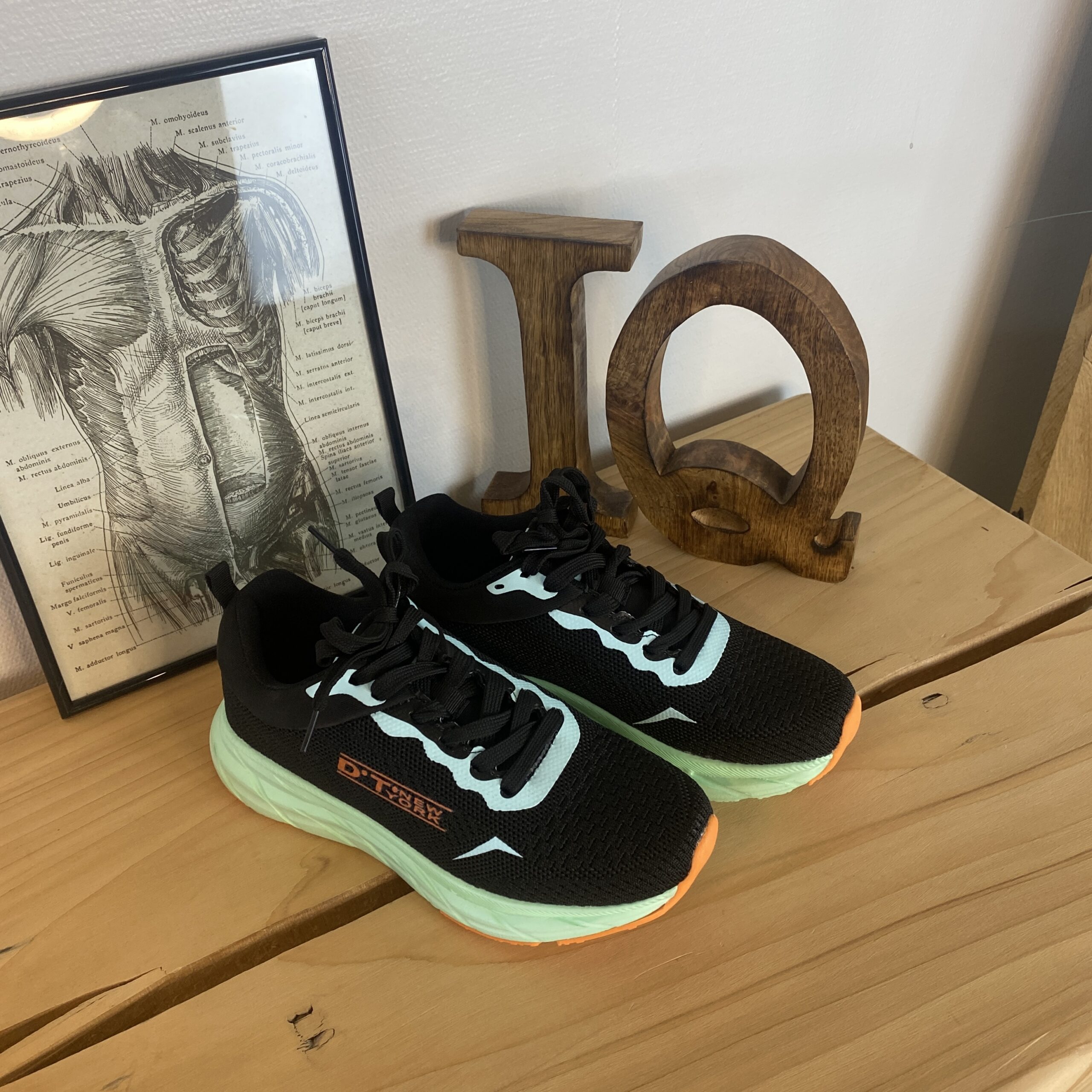 Mellansulan i mintgrön ger effektiv stötdämpning, samtidigt som yttersulan säkerställer ett stabilt fotfäste på olika underlag.
