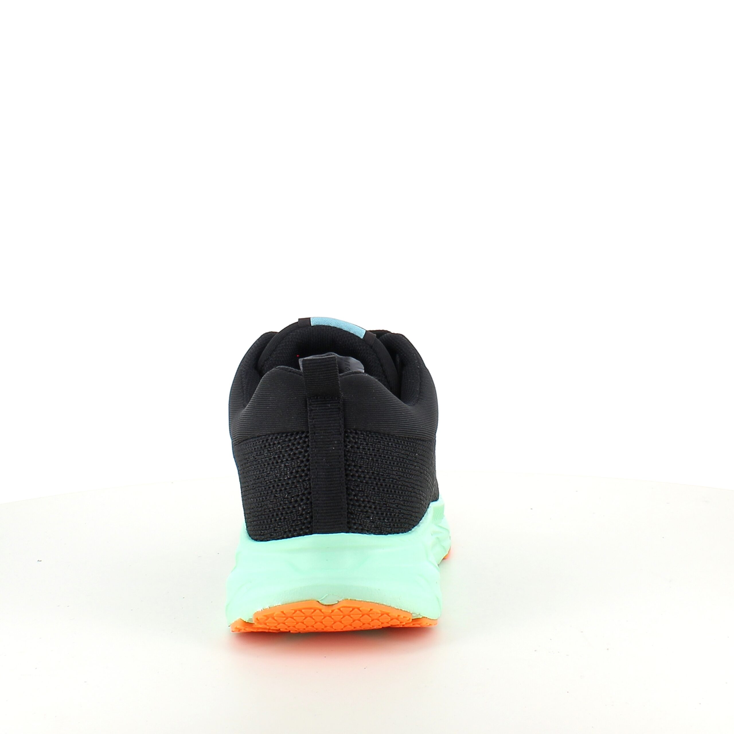 Ovandel är gjord i andningsbart mesh, vilket säkerställer god ventilation, medan den mjuka och rymliga passformen gör skon bekväm att bära hela dagen.