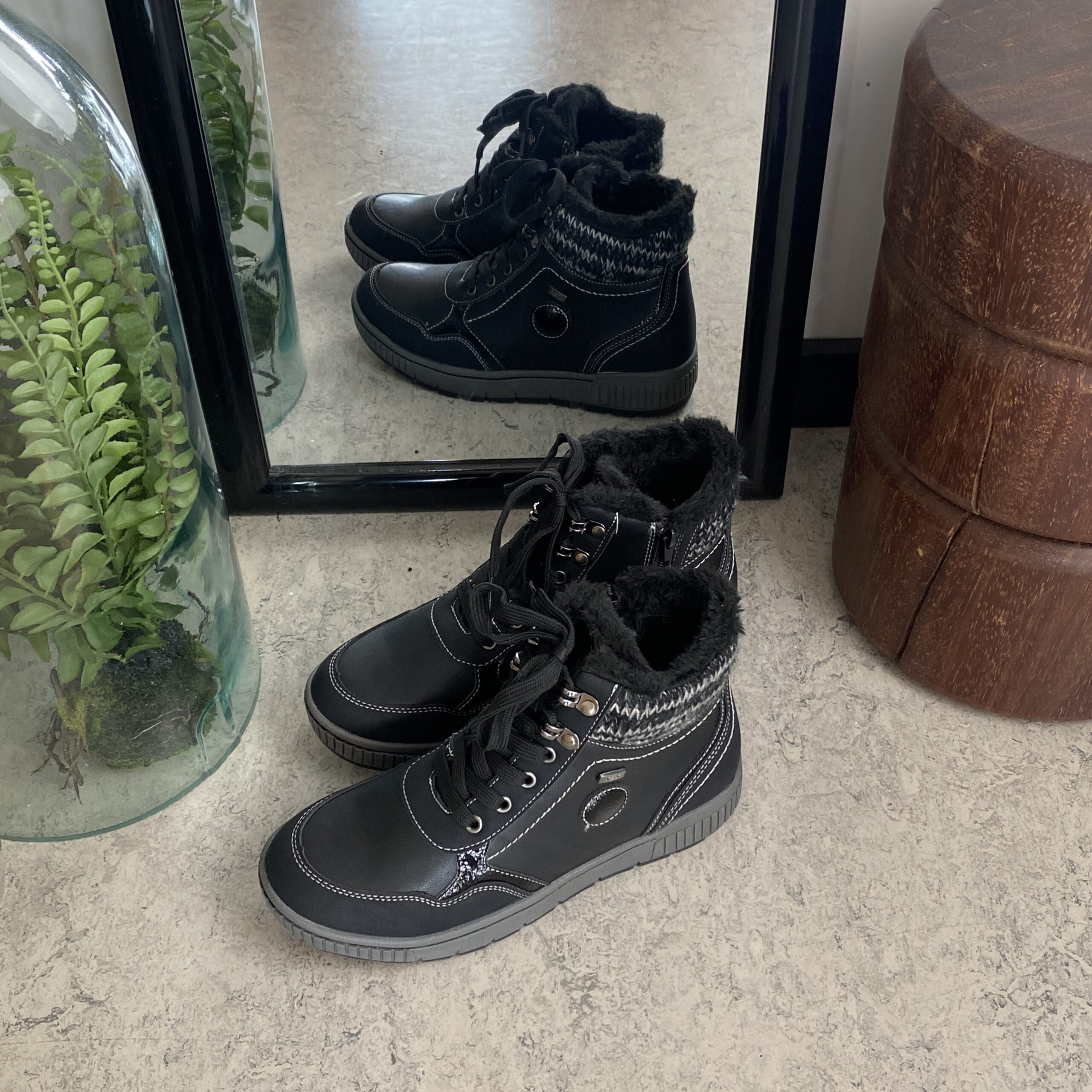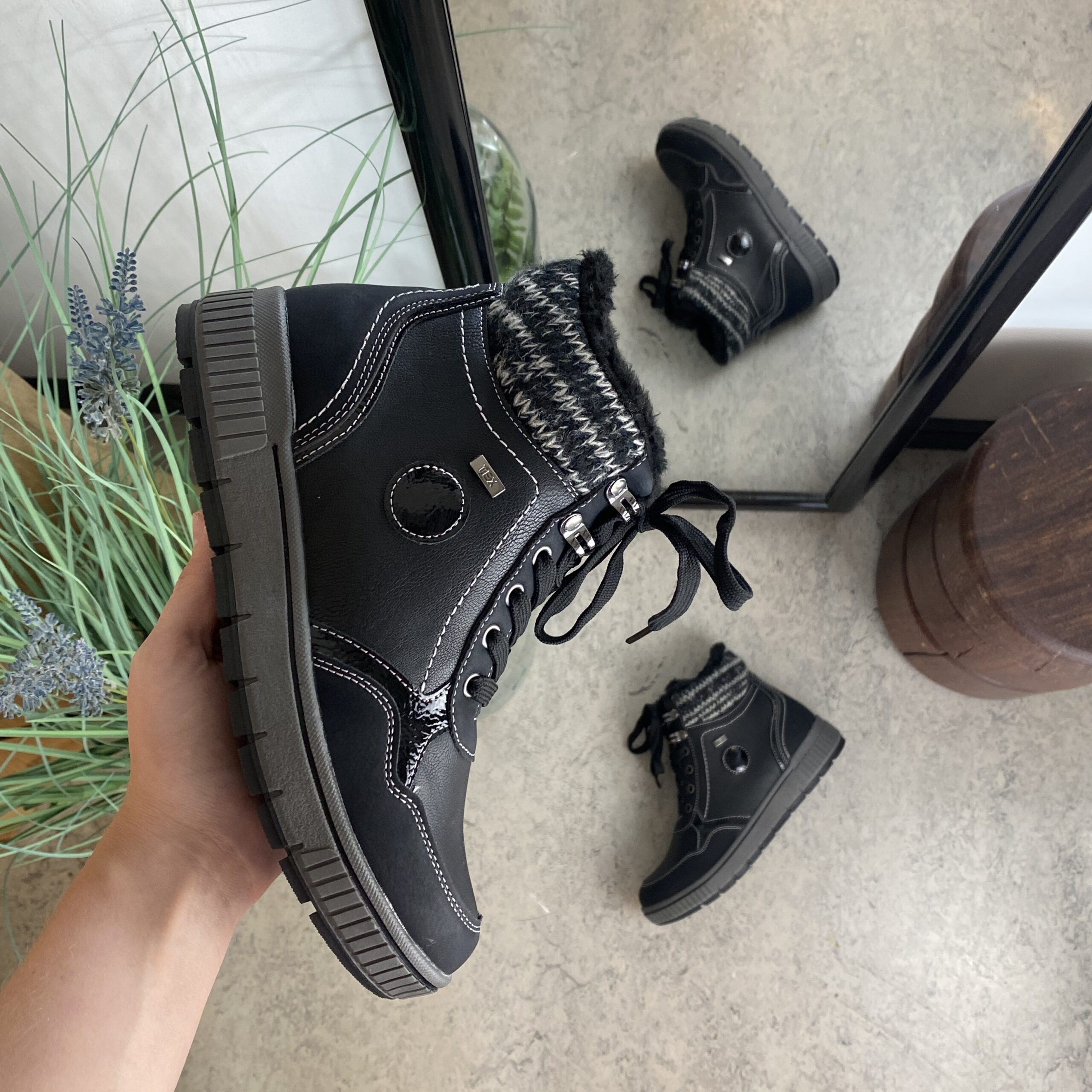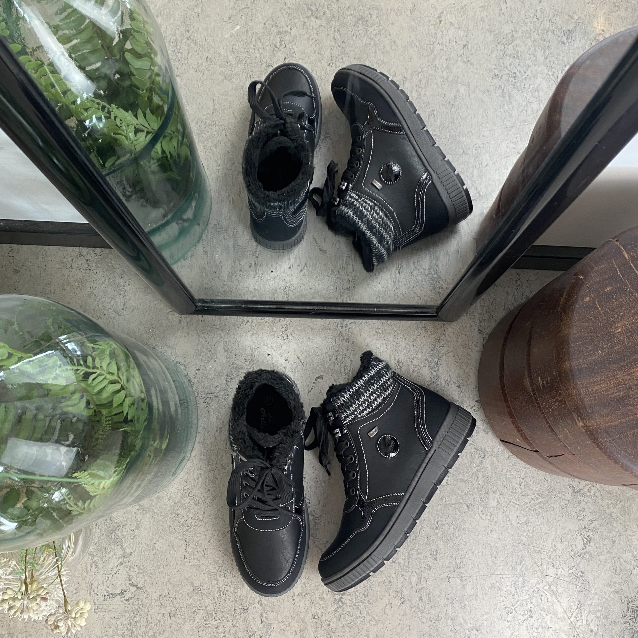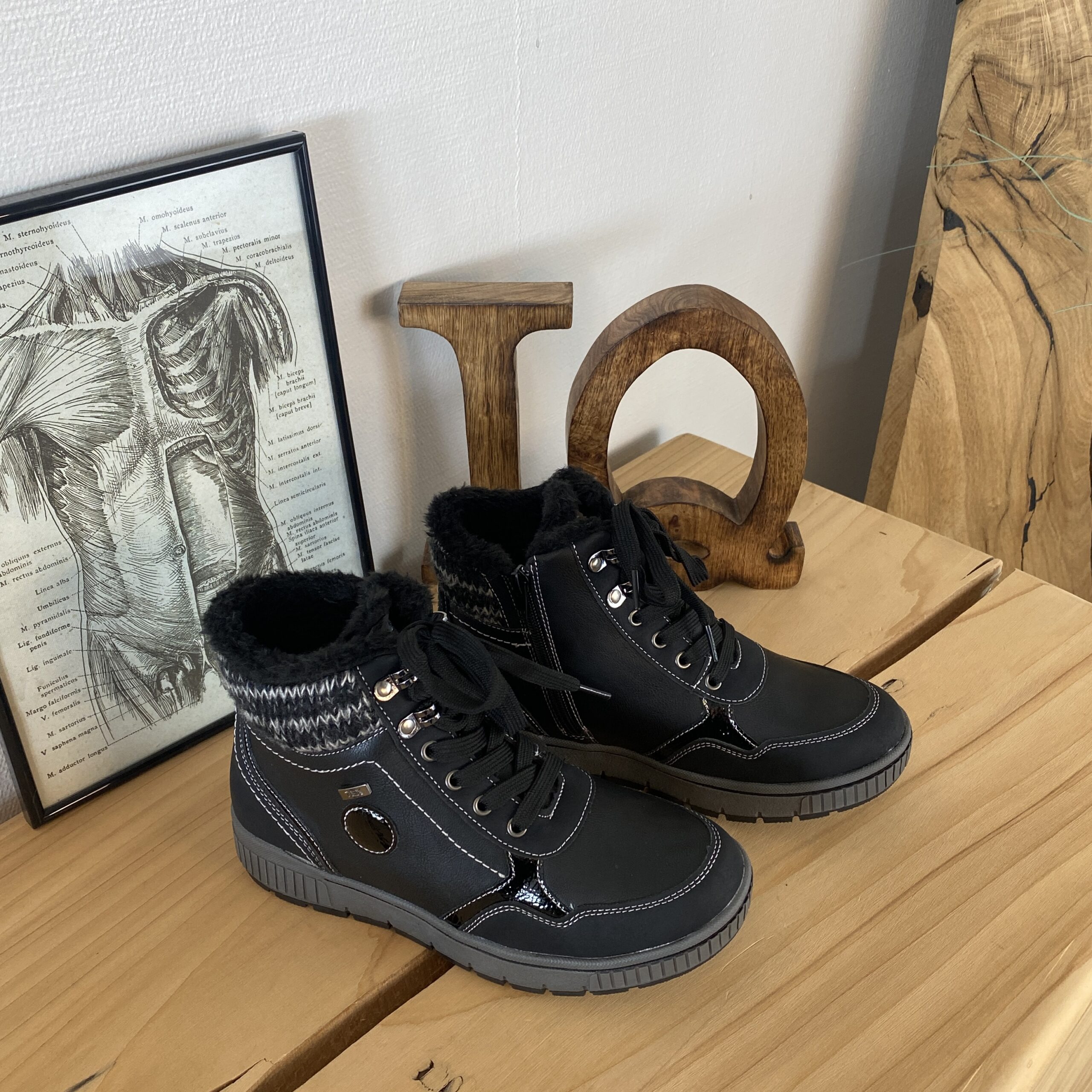 Vinterstövel i svart, med stickad detalj på skaftet.