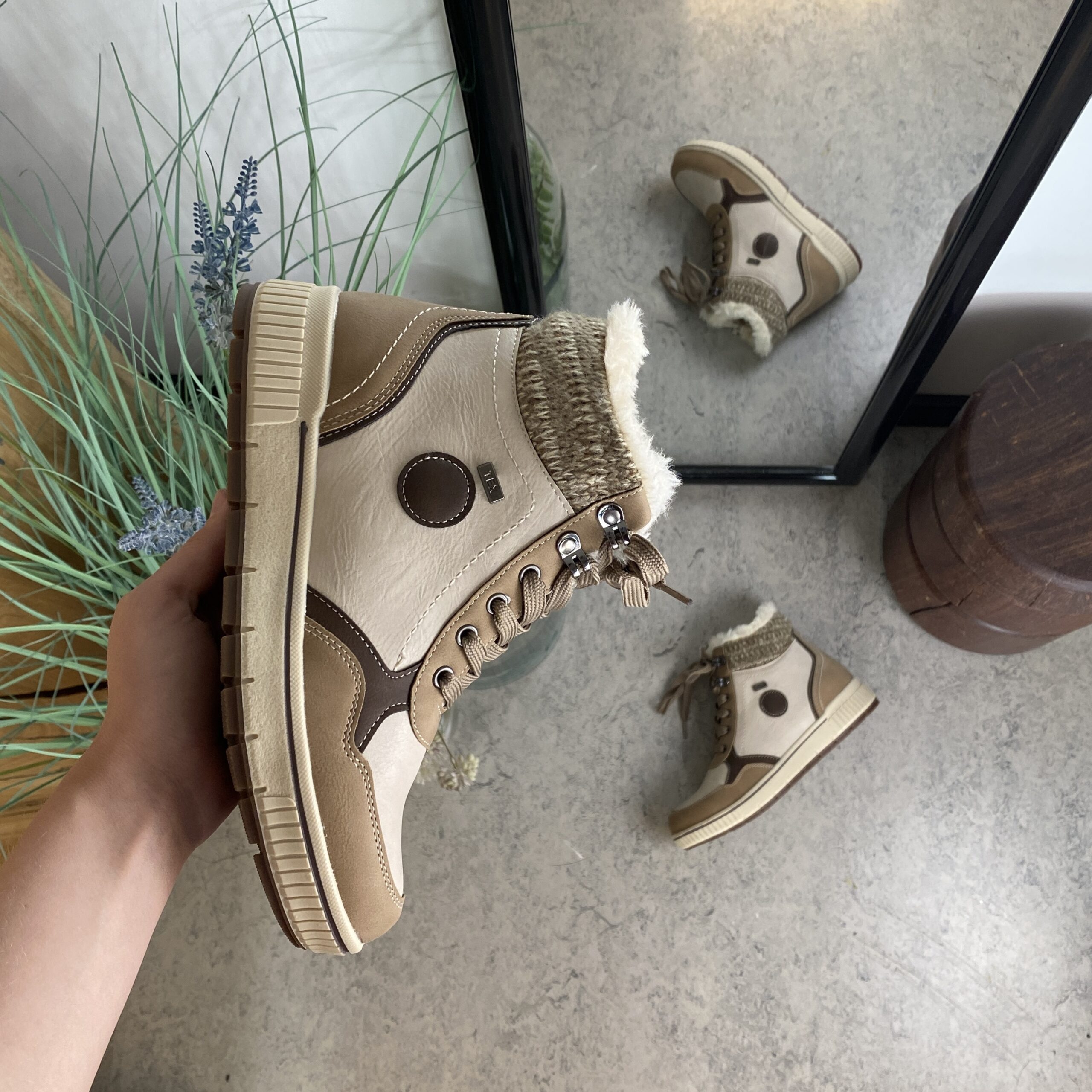 Vinterstövel i färgen Taupe, med stickad detalj på skaftet.