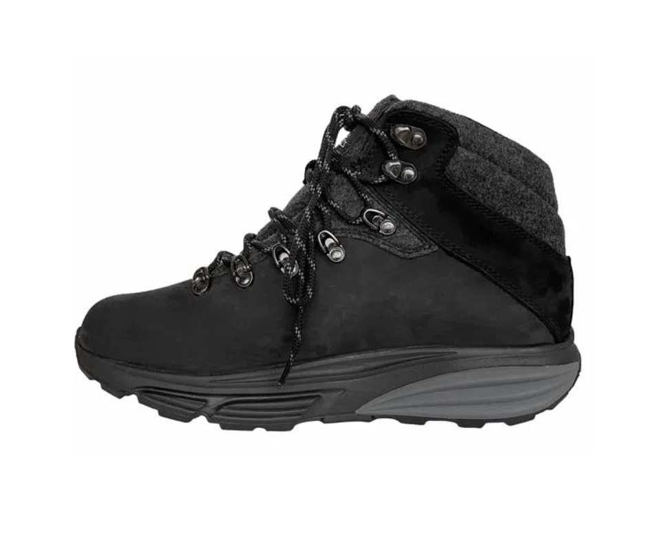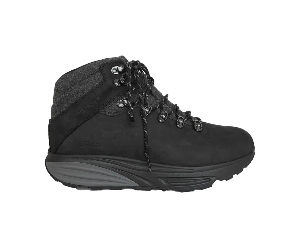 - Trendig och funktionell: MBT Alpine är en klassisk vandringskänga tillverkad av Full Grain läder med matchande detaljer i mörkgrå ull och polyester. Den är designad för att kombinera stil och funktionalitet, så att du kan röra dig fritt utan att kompromissa med komforten, även i dåligt väder.