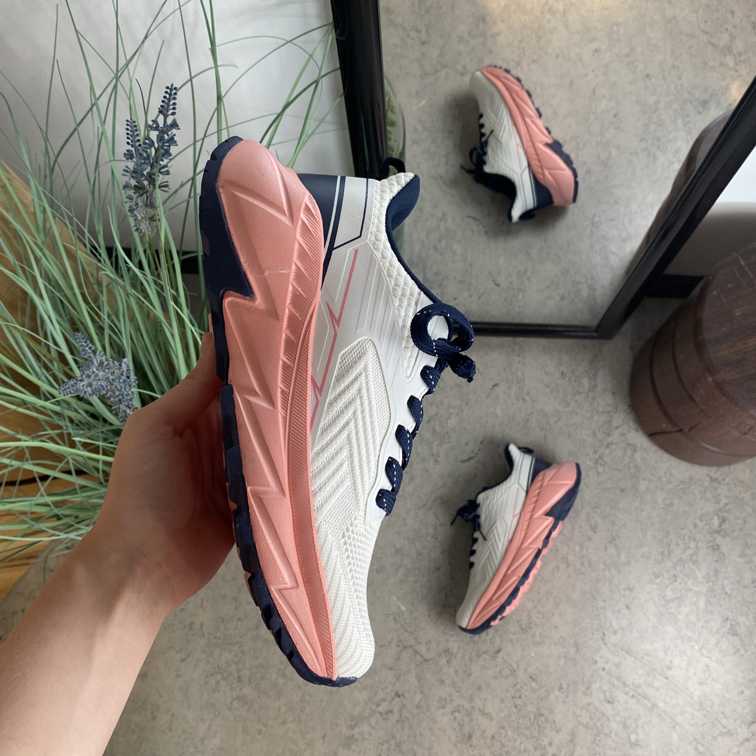 Yttersulan har ett djupt mönster och flexibla rillar som säkerställer ett solidt grepp och stabilitet på olika underlag – perfekt för både inomhus- och utomhusbruk.